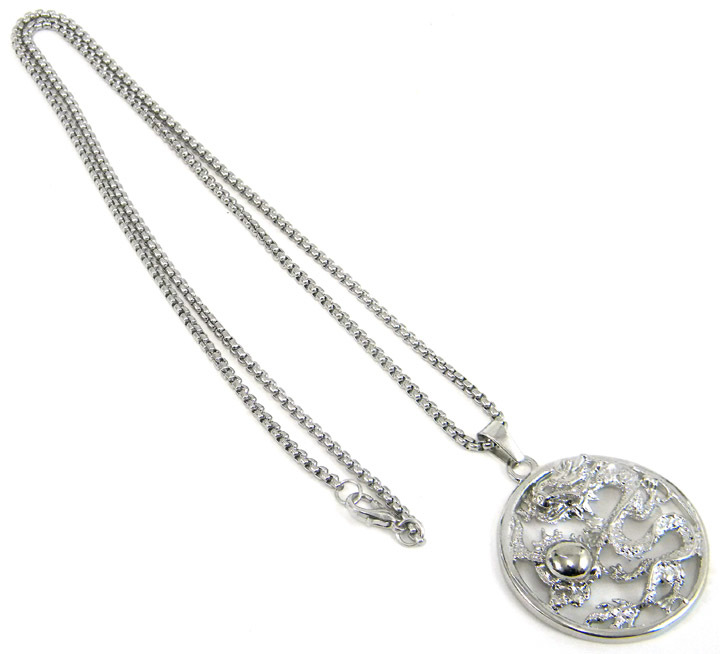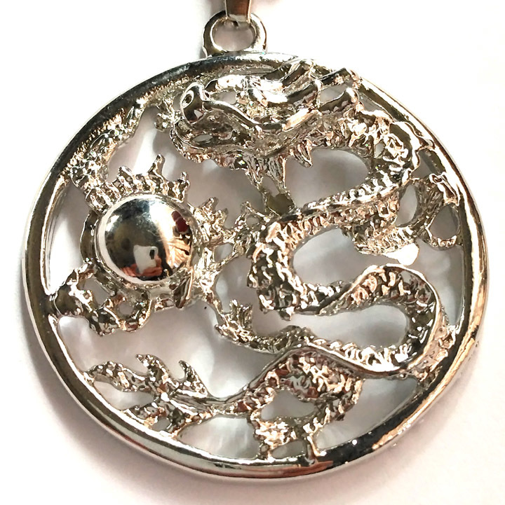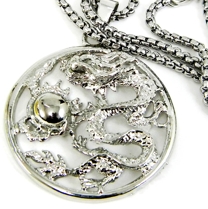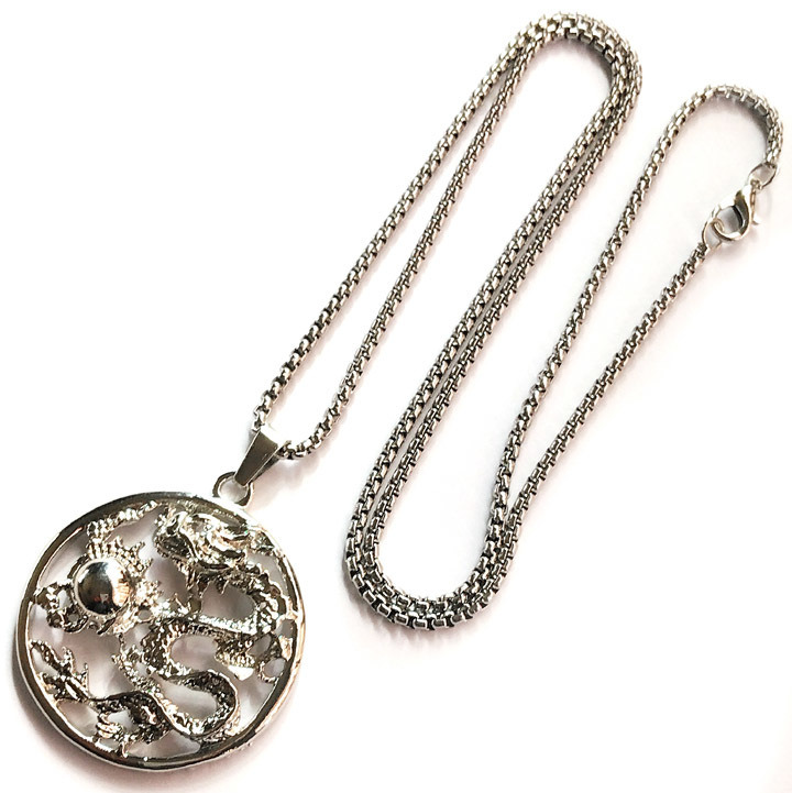 ★ 龍 コイン型 ペンダント ★ 龍神 龍玉 如意宝珠 竜 ネックレス ★ 送料無料 ★