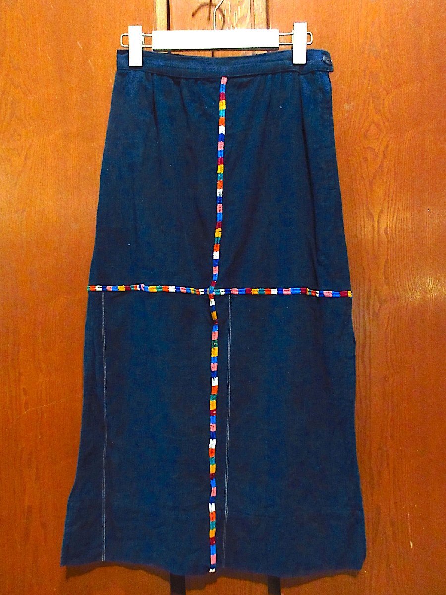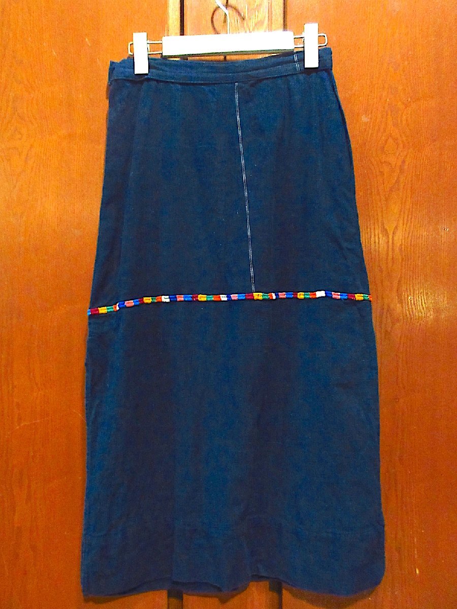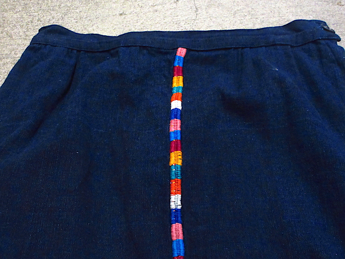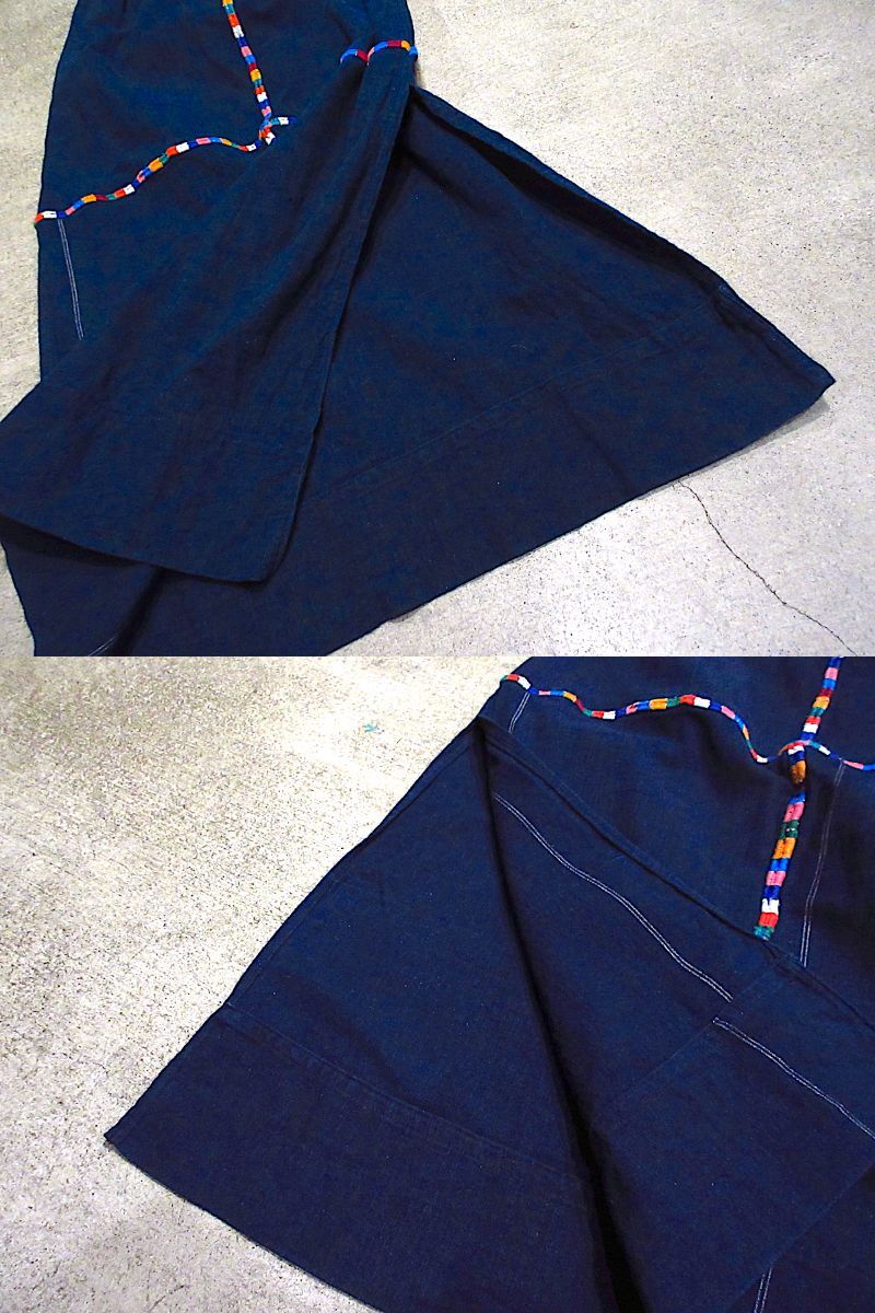 1970's インディゴリネン カラフル刺繍スカート 実寸W68cm
