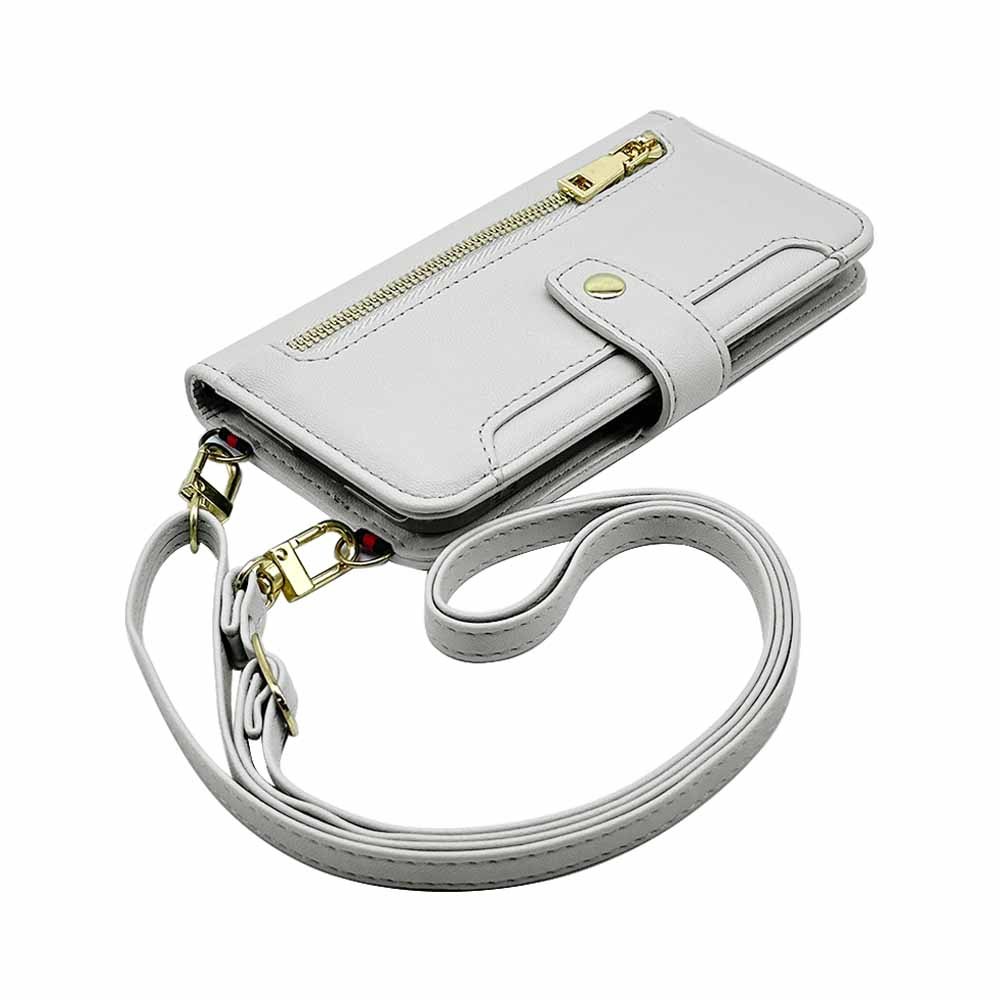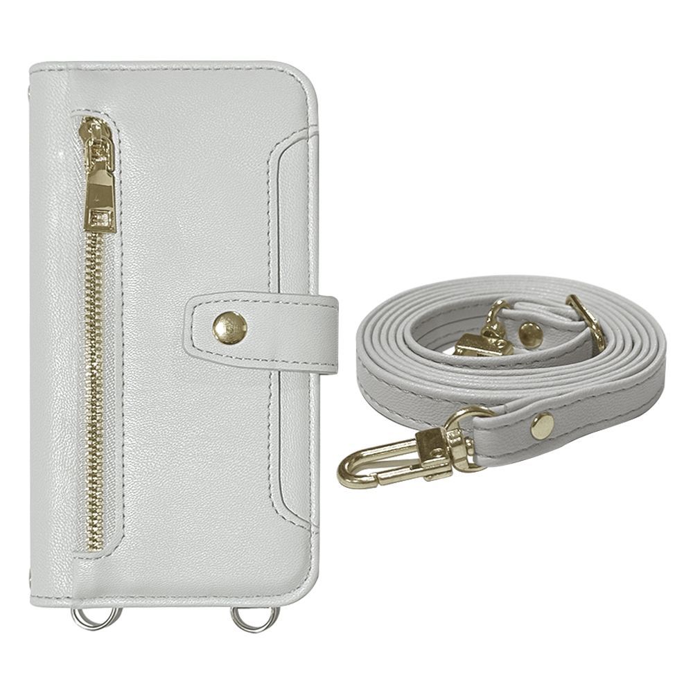 Reno3 A OPPO reno3a スマホケース(手帳ライトグレー)斜めがけ スマホショルダー 手帳型 ストラップ付き くすみカラー