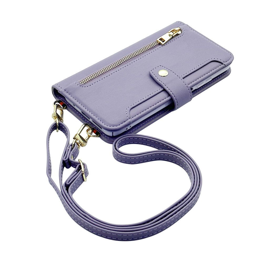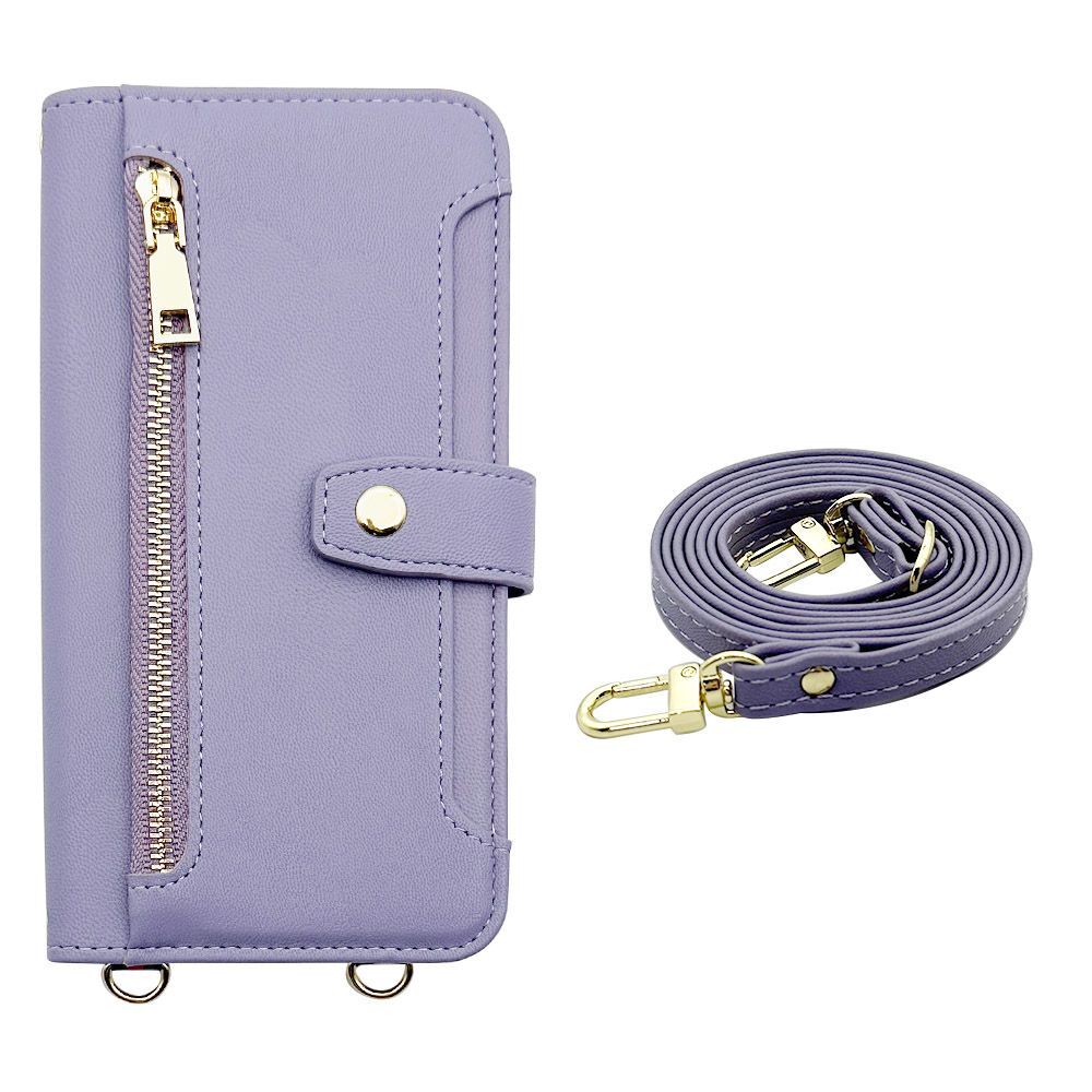 LG V60 ThinQ 5G L-51A スマホケース(手帳アッシュラベンダー)斜めがけ スマホショルダー 手帳型 ストラップ付き くすみカラー