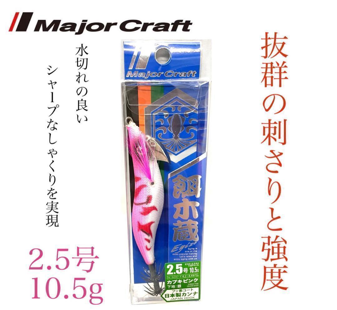 エギング界のかぶき者、ここに、見参。 エッジシンカーの優れたバランスにより、最もしゃくりやすい沈下姿勢を保ちます。 また、本体サイドエッジ、シャープノーズ、エッジシンカーの相乗効果により水切れの良いシャープなしゃくりを実現しました。 イカを乗せやすく、掛けやすいバランスに設計されています。 細軸+フッ素コートならではの、抜群の刺さりと強度を持った日本製カンナは、イカに警戒されないツヤを抑えたブラックカラーフィニッシュを採用しました。 ●2.5号(10.5g) ●沈下スピード:4.2〜4.4秒/m 商品コード:4573236185248 474 0.7