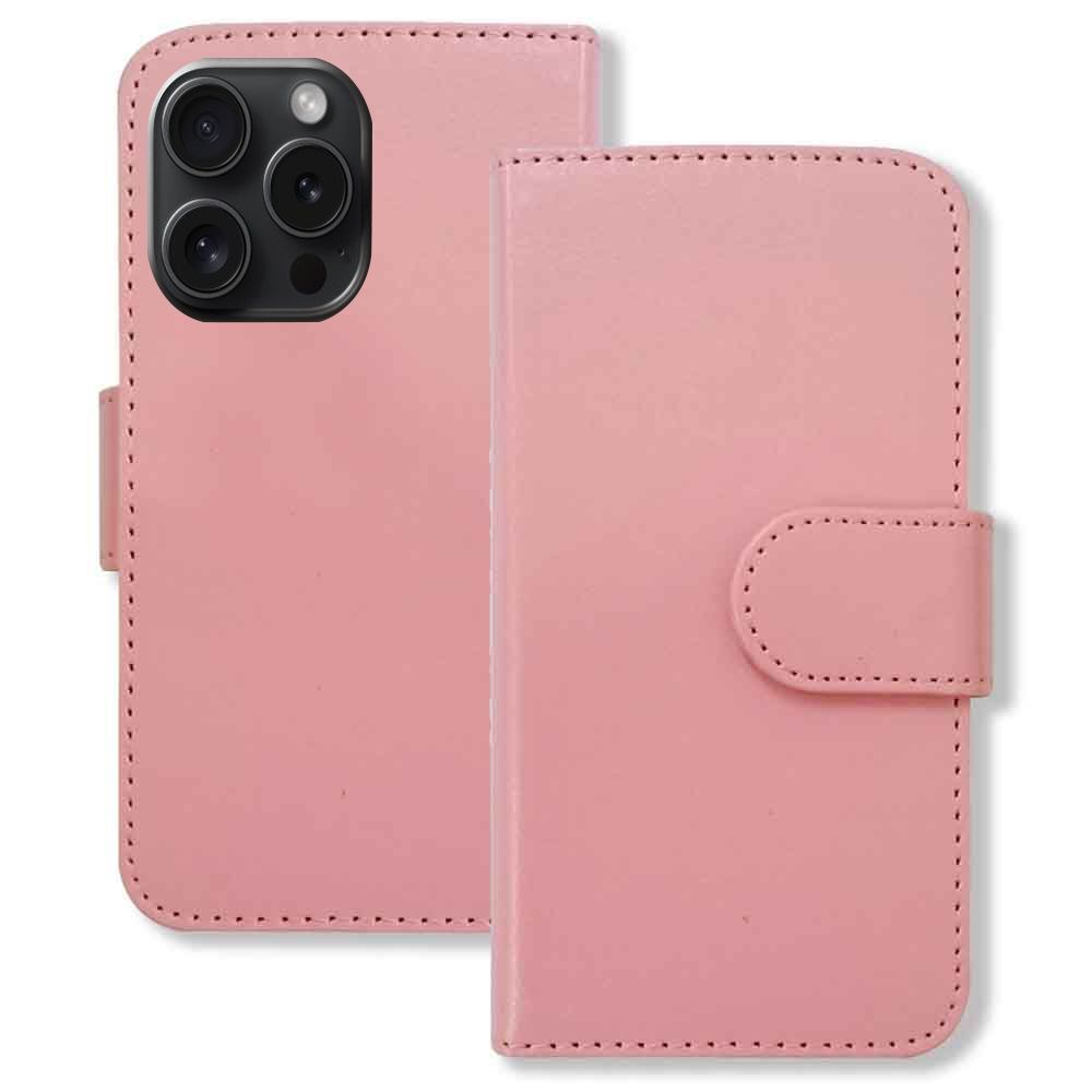 iPhone15 Pro アイフォン15プロ スマホケース(手帳ピンク)手帳型 PUレザー 無地 ケース ダイアリータイプ 横開き カード収納 カバー