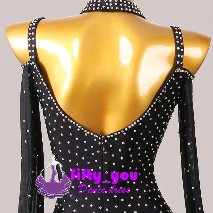 新品fifty_you レディース社交ダンス衣装 ワルツ競技試合デモ用ドレス モダン素敵ドレス サイズオーダー 輝きライトストーン飾 トッド柄