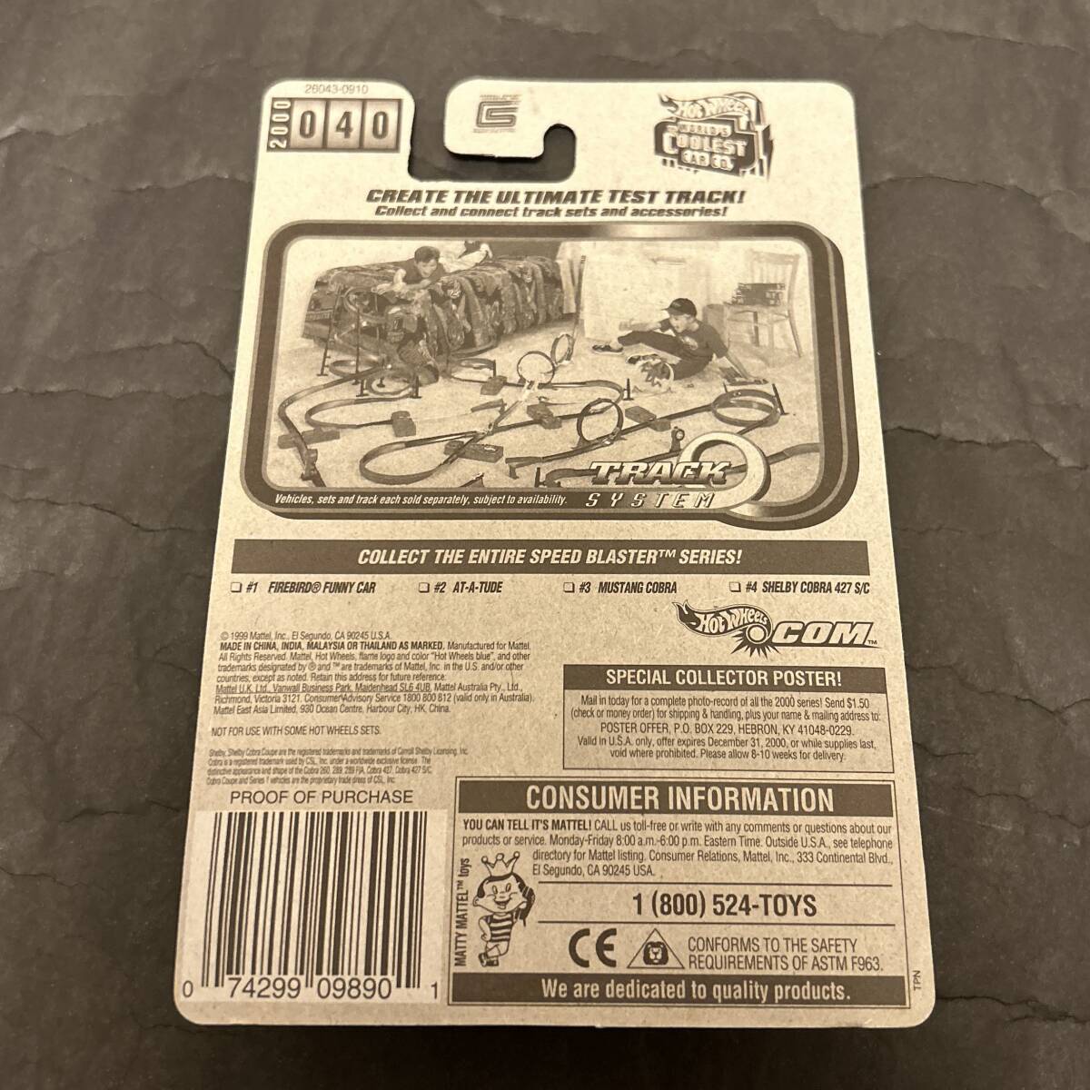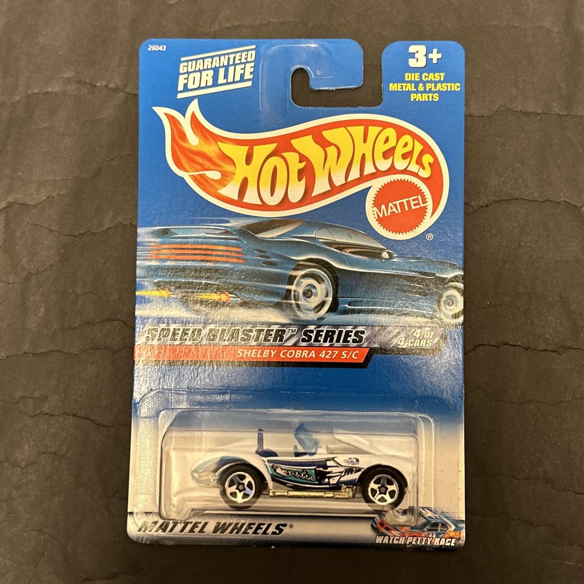 当方のオークションをご覧いただきありがとうございます。アメリカで購入しましたデッドストックのホットウィールです。99年製のスピードブラスターシリーズのシェルビーコブラになります。20年以上前の物なのでブリスターパックや台紙に変色や曲がりがあります。