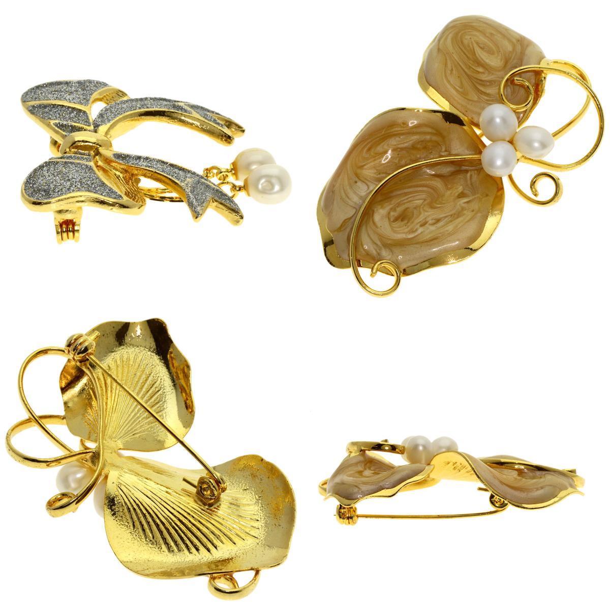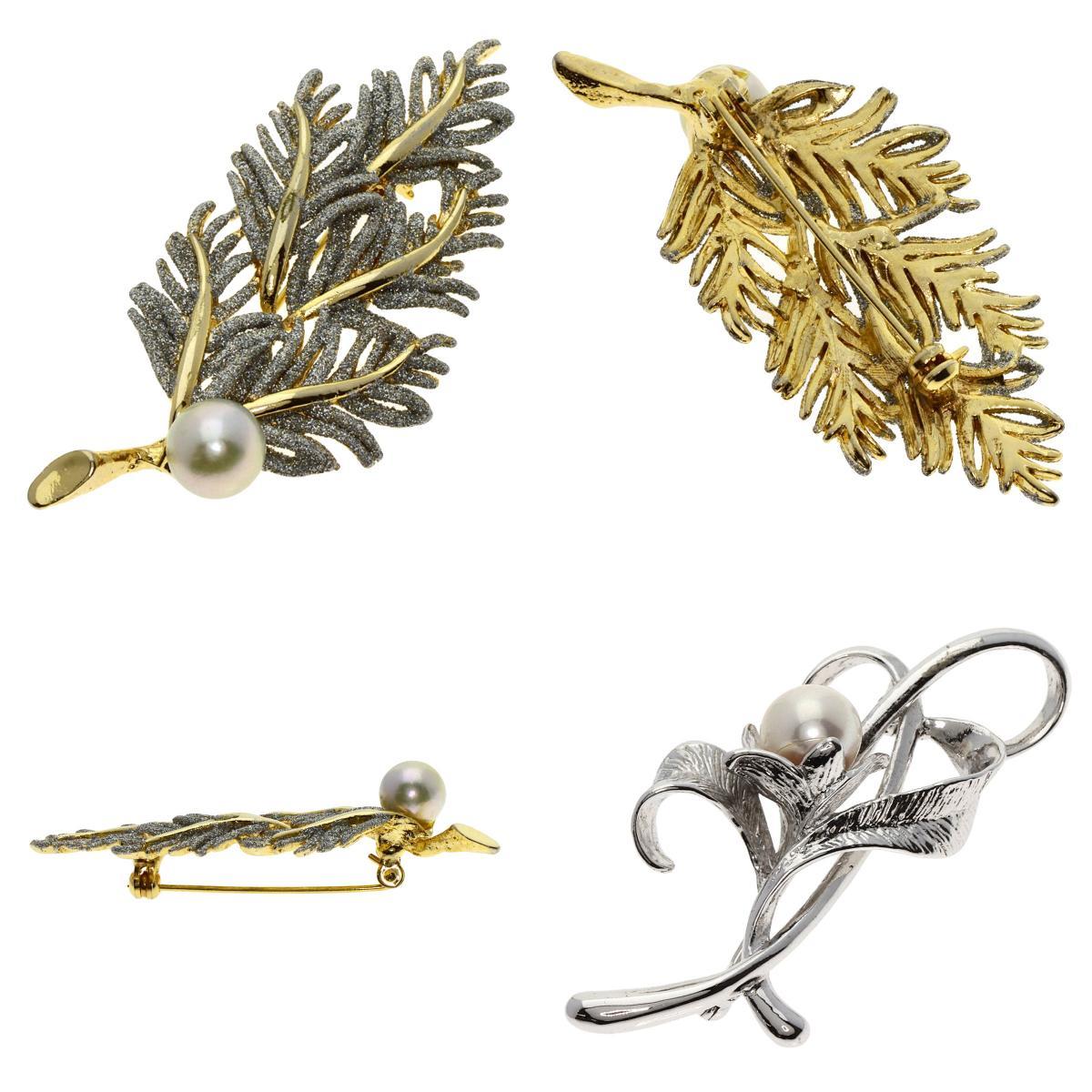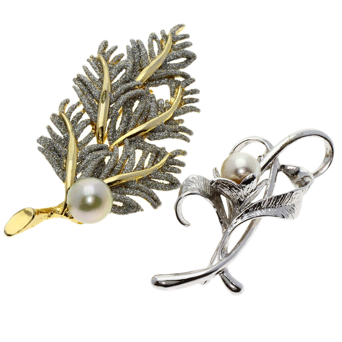 ジュエリー パール 真珠 フェイクパール エナメル ブローチ8点セット ブローチ シルバー GP 中古