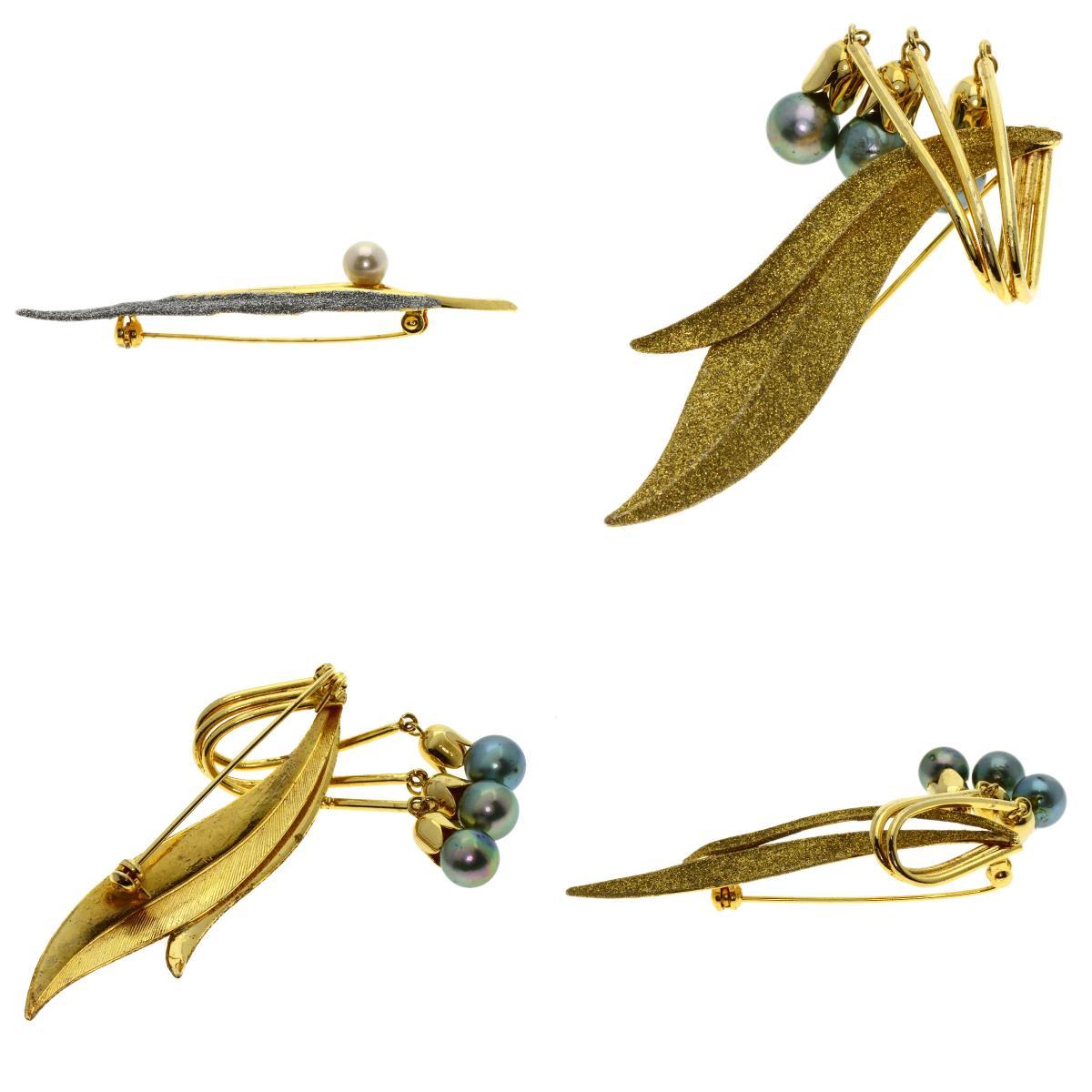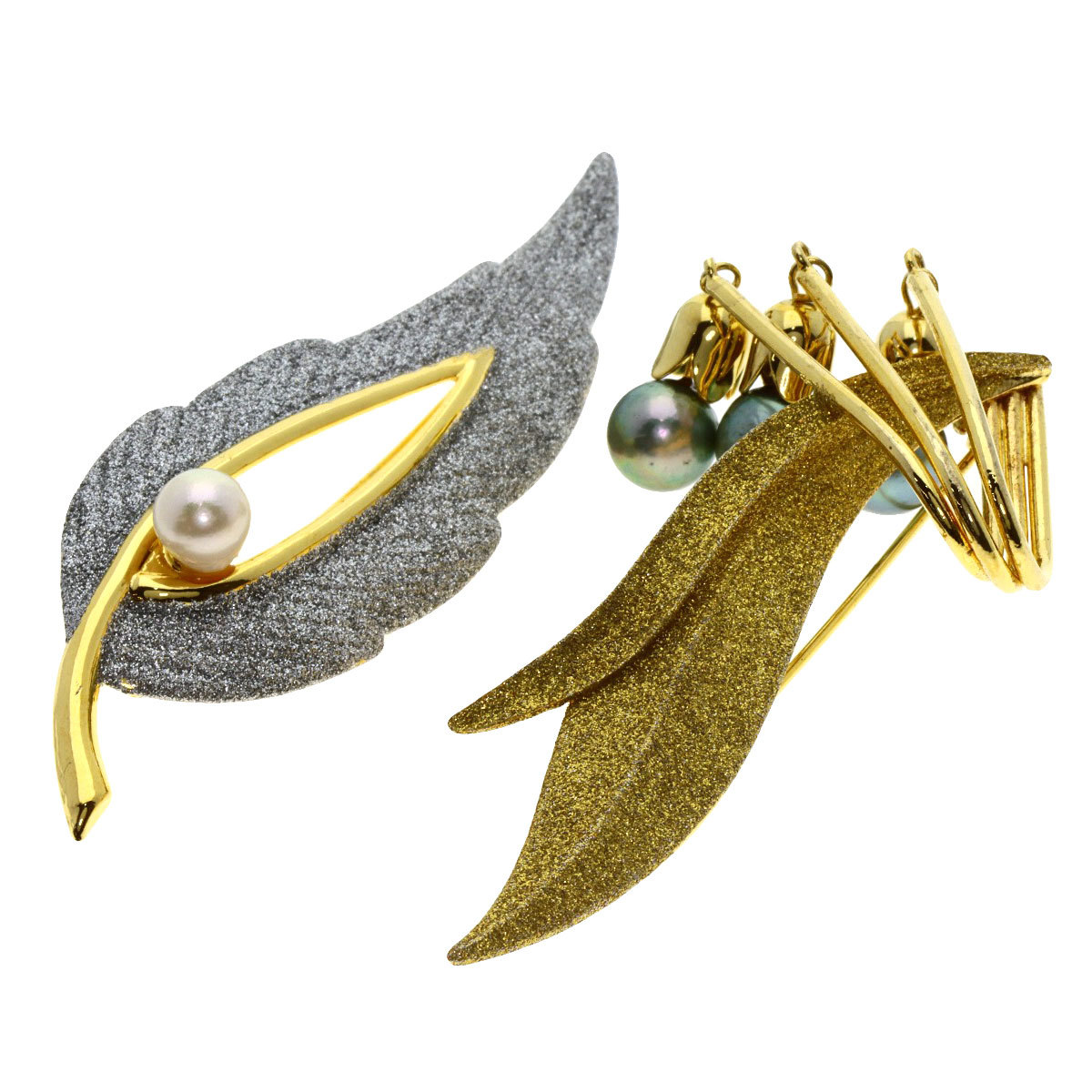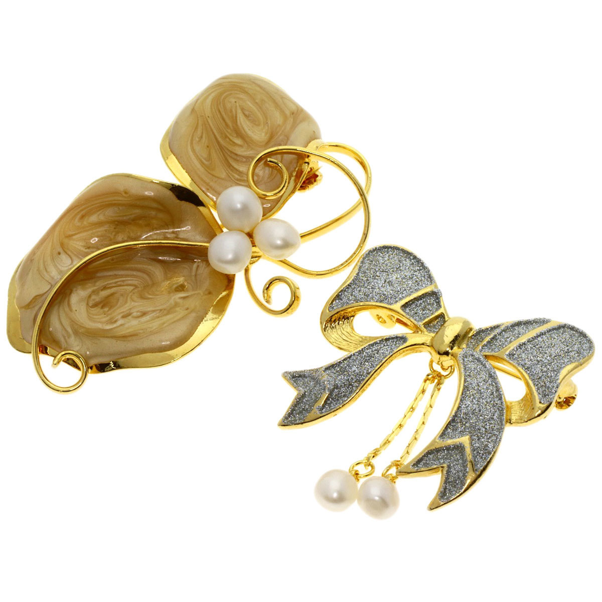 ジュエリー パール 真珠 フェイクパール エナメル ブローチ8点セット ブローチ シルバー GP 中古