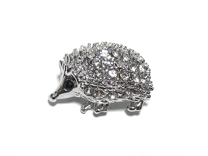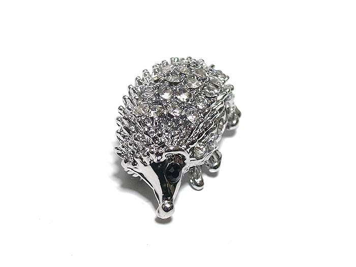 【ラペルピン★ブローチ】ハリネズミ★はりねずみ★ヘッジホッグ★動物★アニマル★ラインストーン★キラキラ★シルバー★スーツ/pin-0242
