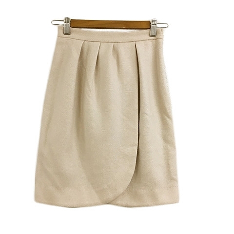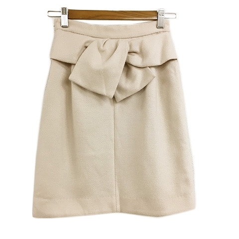 アプワイザーリッシェ Apuweiser-riche スカート タイト ミニ ウール リボン ラップ風 タック 0 ベージュ ピンク レディース