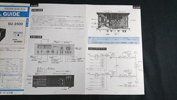 | 【昭和レトロ】『Technics(テクニクス) TECHNICA GUIDE(テクニカルガイド)+補修部品価格表 Stereo integrated Amplifier(ステレオプリアンプ) SU-2500 昭和52年6月』松下電器産業株式会社/回路図・展開図 有り/レストア | ||