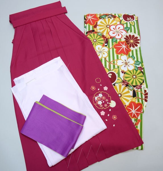 | 項目 | 二尺袖着物袴フルセット ・二尺袖着物 ・二尺袖長襦袢(白地の半襟付き) ・重ね衿(着物に縫いつけられています) ・袴 ・袴下帯(浴衣帯にも使用できます。) ■袴下帯につきましては、モデル着用の物ではではなく、2枚目、3枚目に掲載されている商品になります ■半衿は、モデル着用の刺繍の半襟ではなく、白の無地半衿になります |