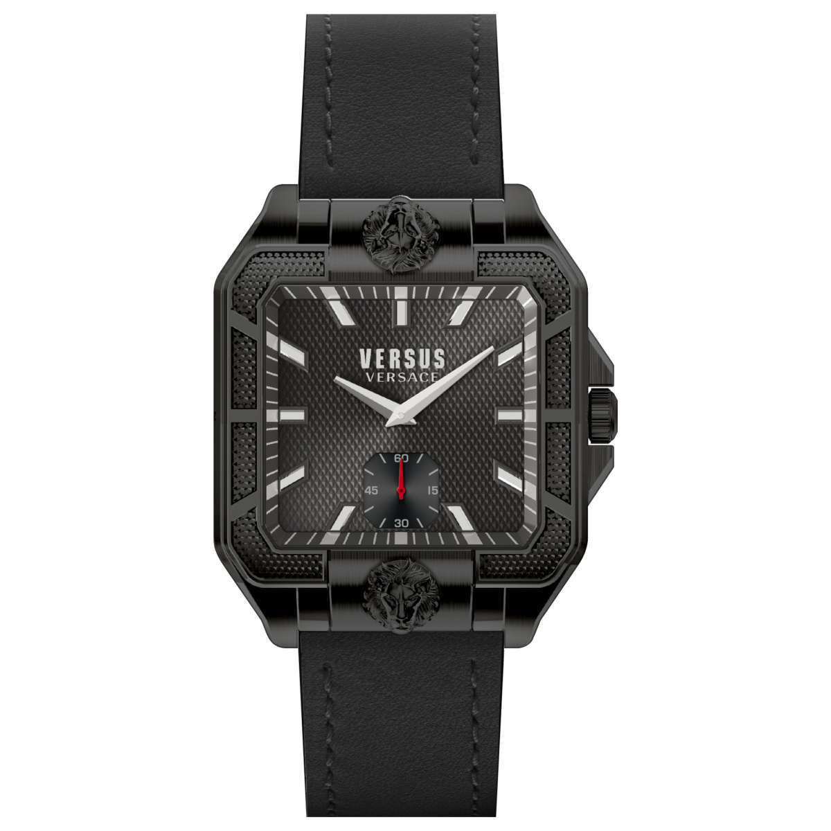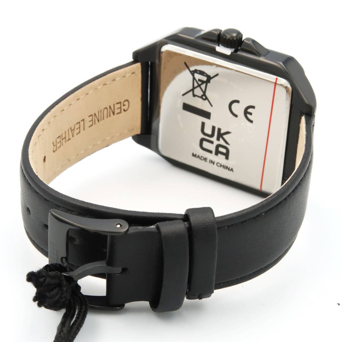 文字盤・ケース・バンドの全てがブラックのクールな配色ながら、スクエア形状の独特なケースシルエット、そしてブランドロゴ(ライオンロゴ)でとても上品な雰囲気に仕上がっております。