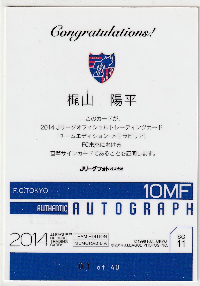 パックから出る直筆サインカードで、シリアルナンバーが入っています。シリアルナンバーは01of40のファーストナンバーです。