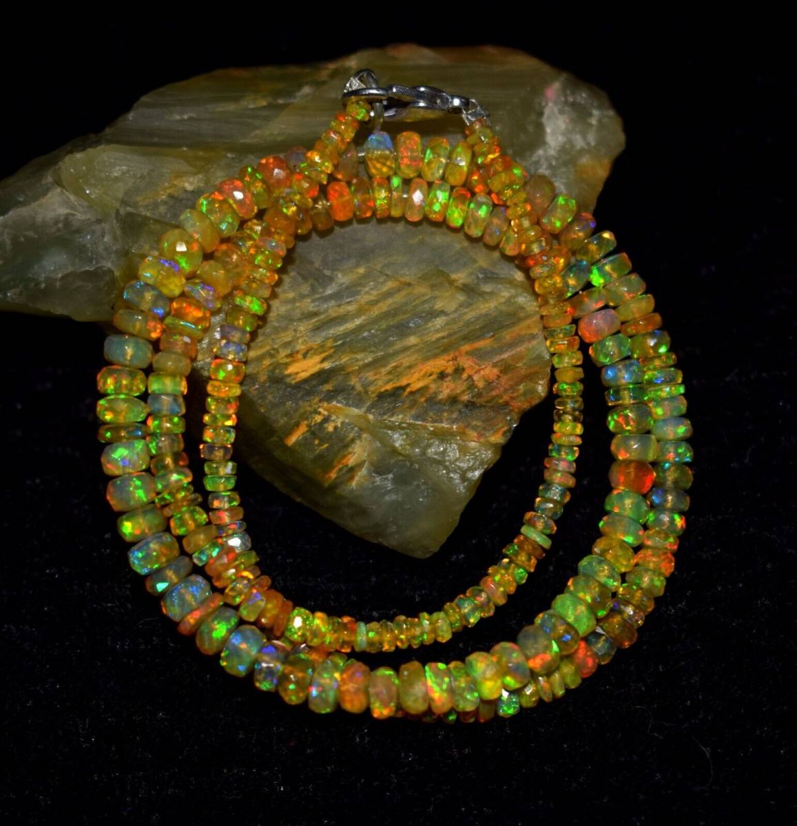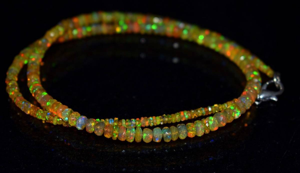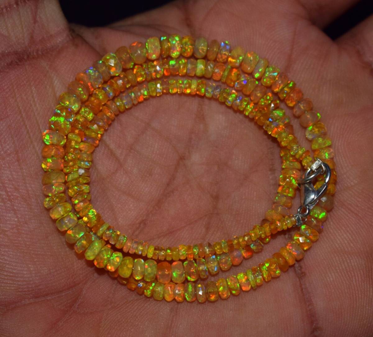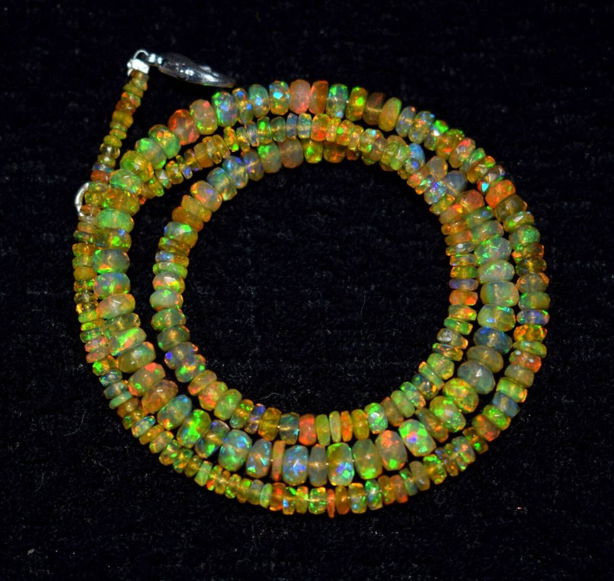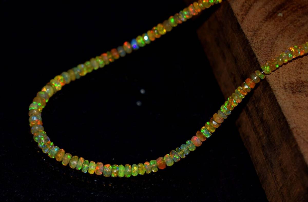 オパール  ネックレス すぐにお届けできます。★★★特上ナチュラルエチオピアファセットオパール多面カット高級ビーズ使用 約41㎝