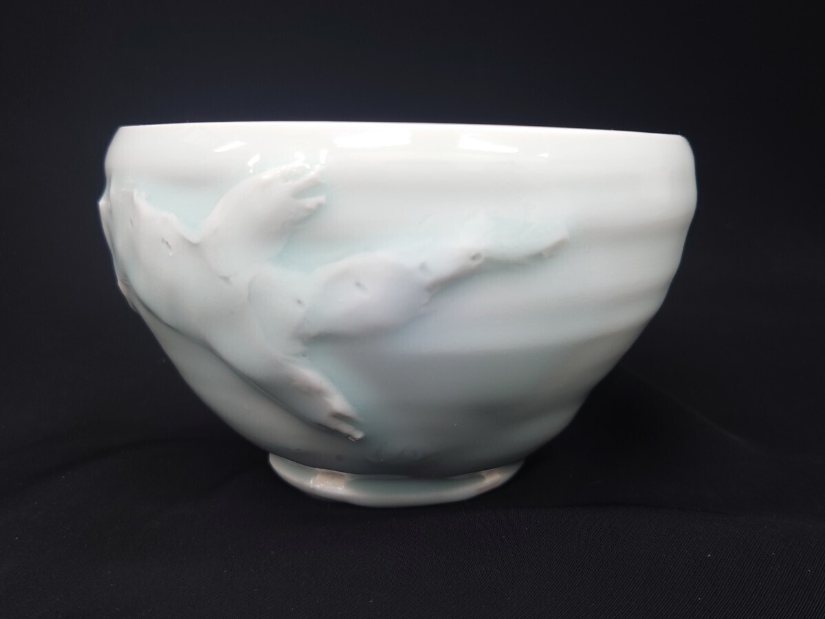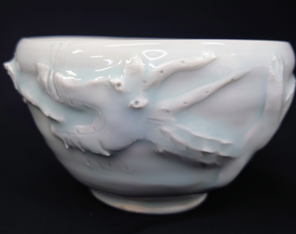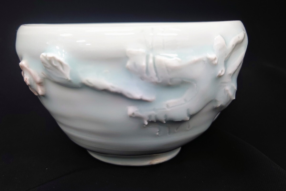 吉川千香子 Chikako Yoshikawa 陶器 碗 龍 花 陶芸作家 常滑 器☆LH3☆10