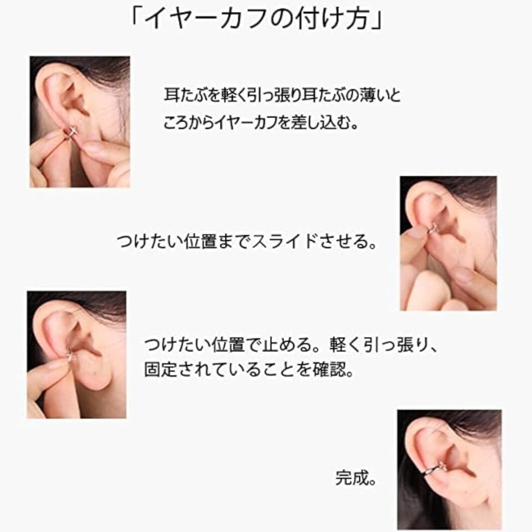 【装着しやすい】イヤーカフのサイズは微調整も可能です。耳たぶや軟骨部分にそっと埋め込み、固定すれば手を緩めることができ。耳につけて、ゆるい場合は、指で押さえながらゆっくりと力を入れてイヤーカフを調整してください。きつすぎる場合は、レディースイヤーカフをサインペンの上に置いてサイズを調整します。フェイクピアスも他のイヤリングと気軽に合わせられます。