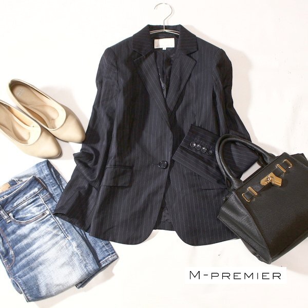 美品 M-PREMIER エムプルミエ 綺麗め ピンストライプ スーツ生地 ジャケット 34号 XS 春 秋 合服 24D03
