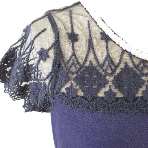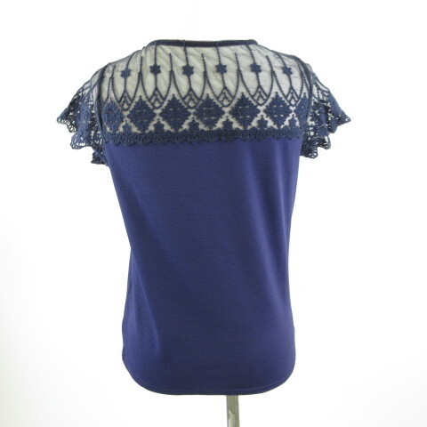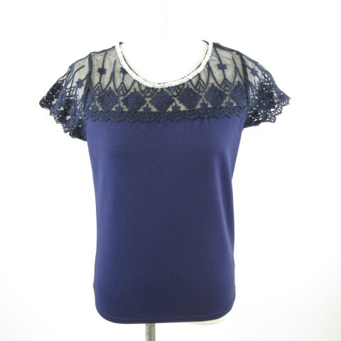 セシルマクビー CECIL McBEE カットソー 半袖 レース 紺 M *T682 レディース