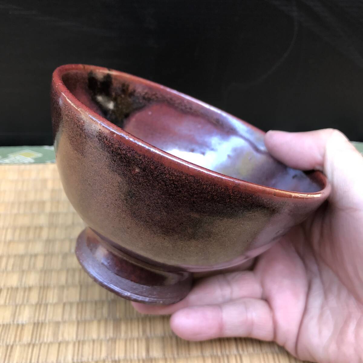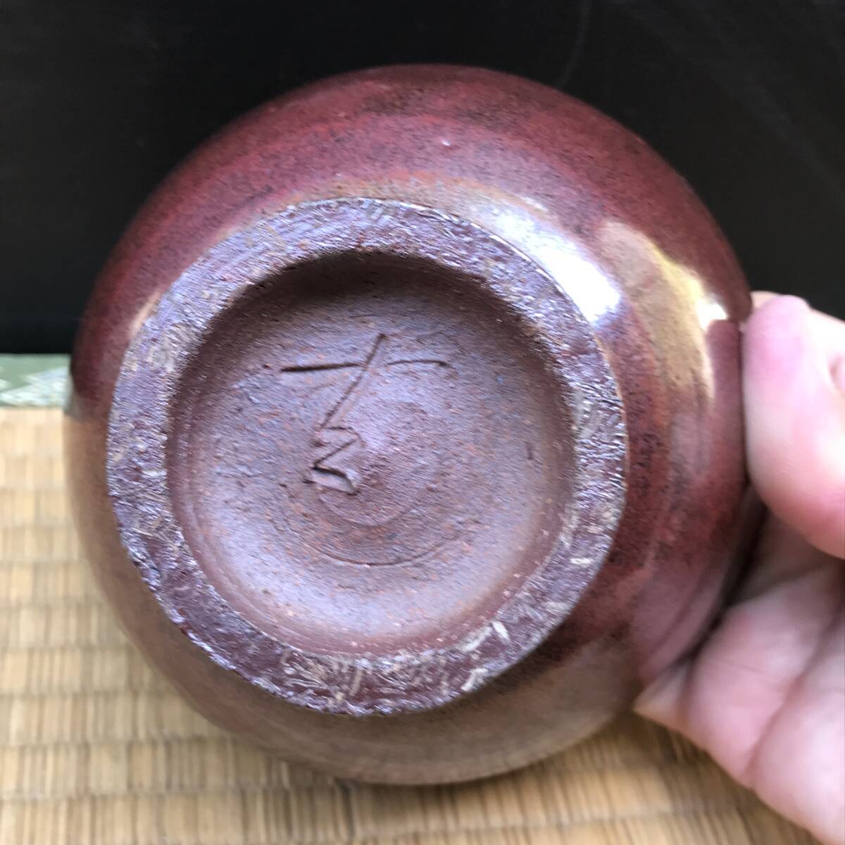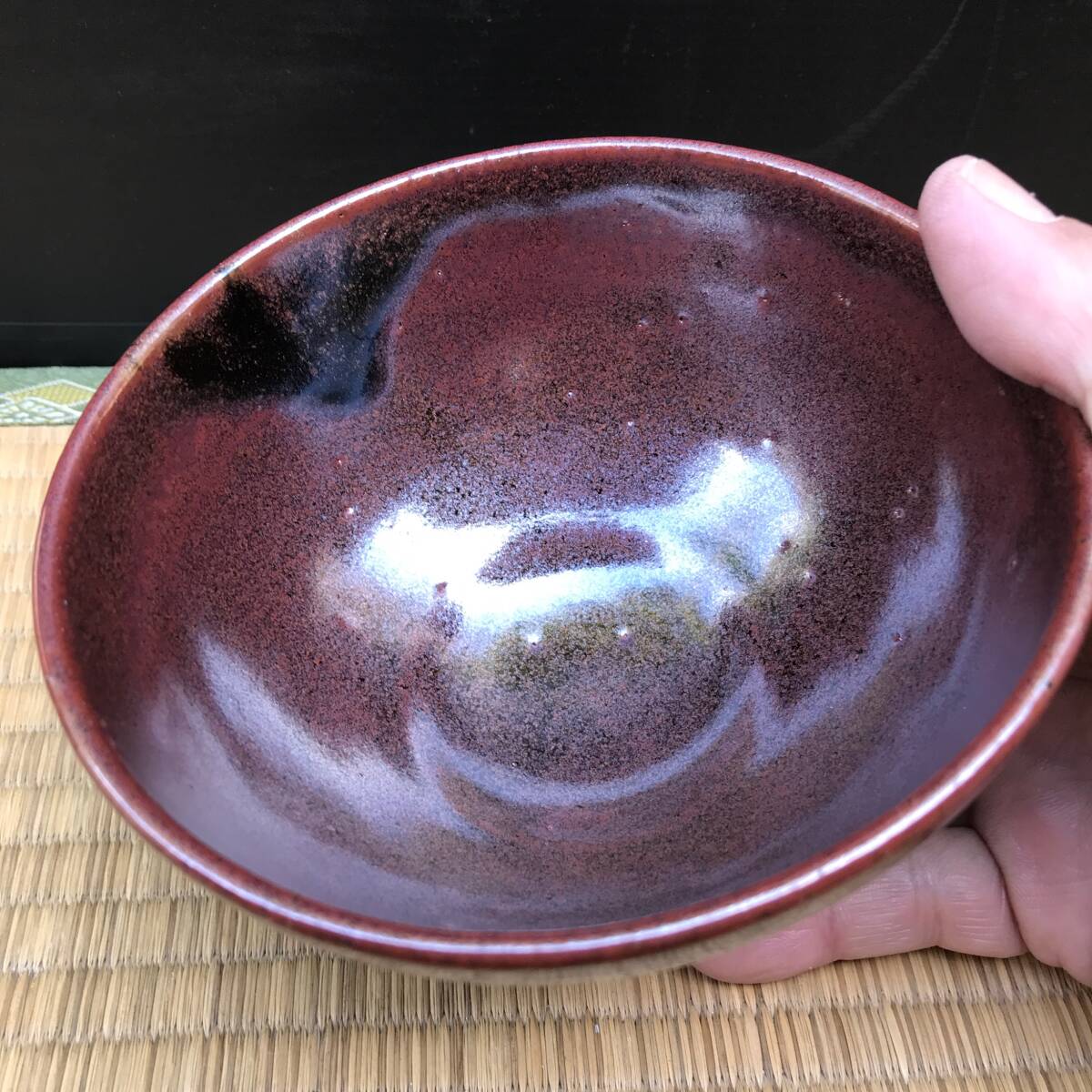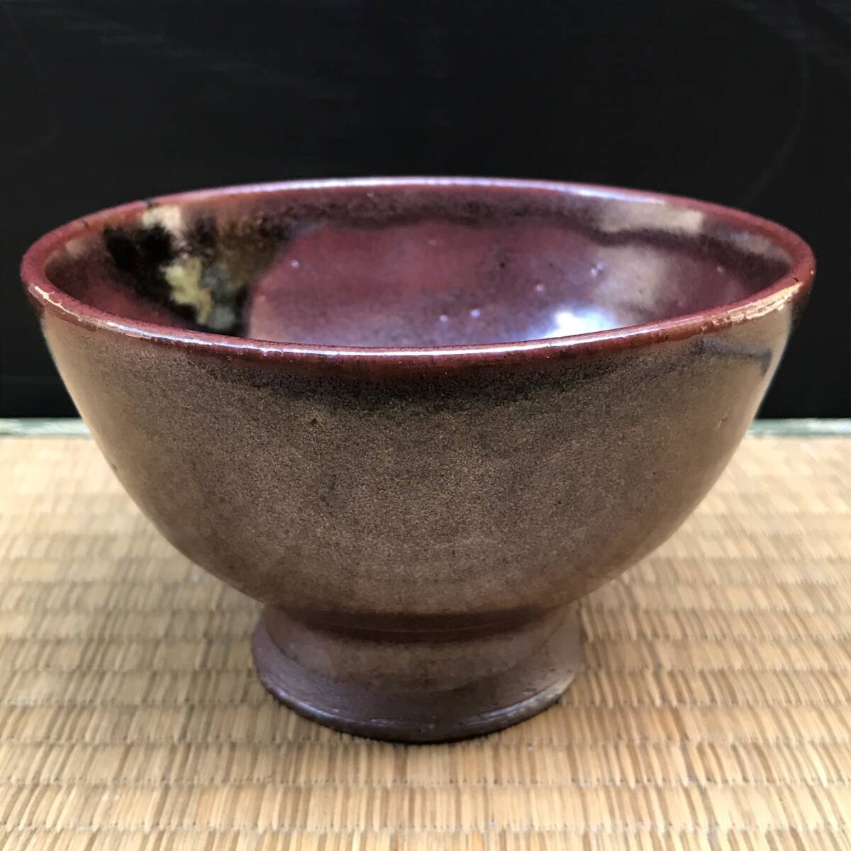 鉄釉のお茶碗、小山冨士夫(古)小山古銘印?茶器 茶入 茶わん 小鉢 杯 珍味入れ(R60318_B)