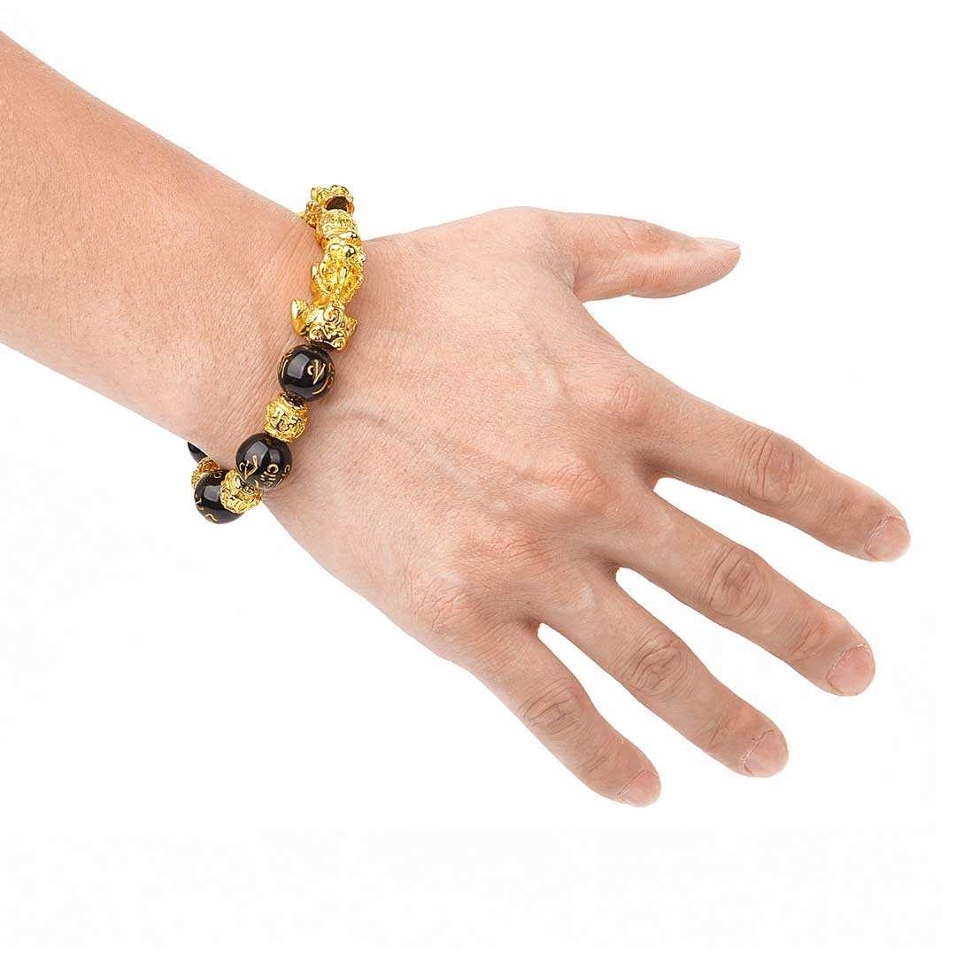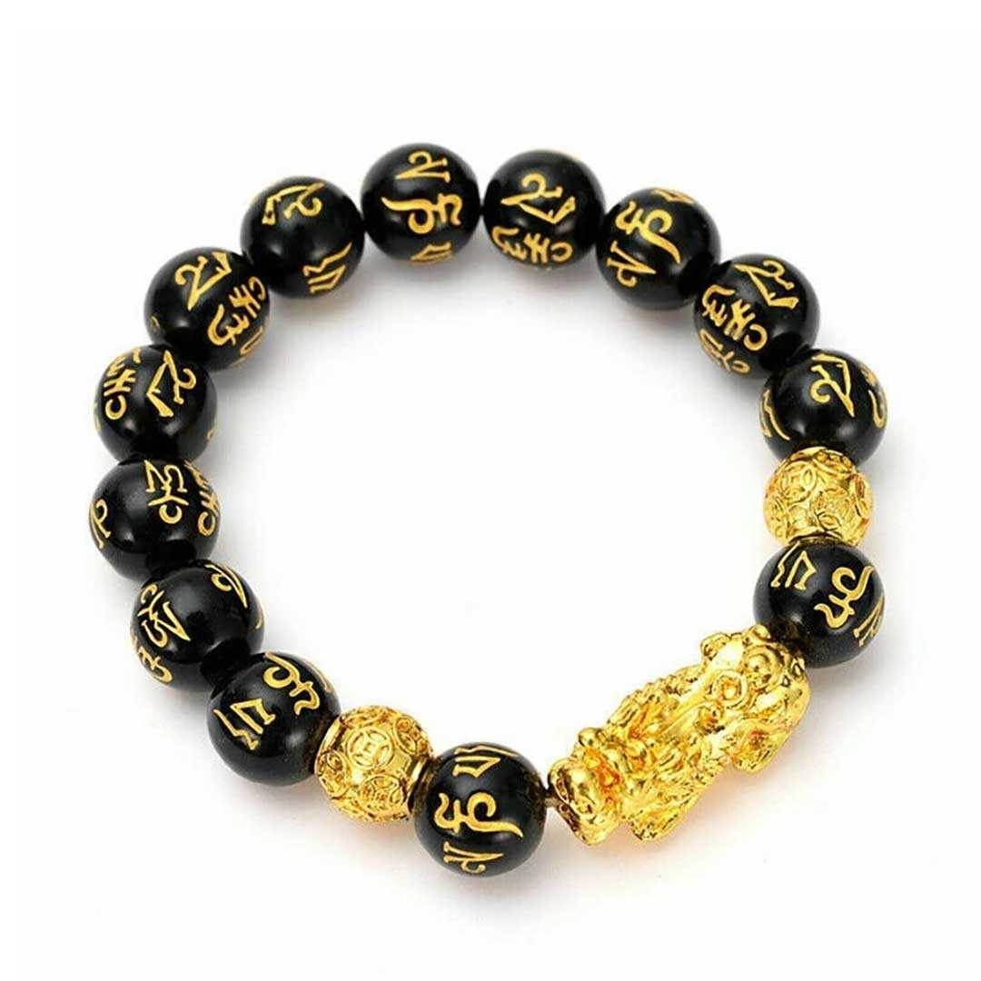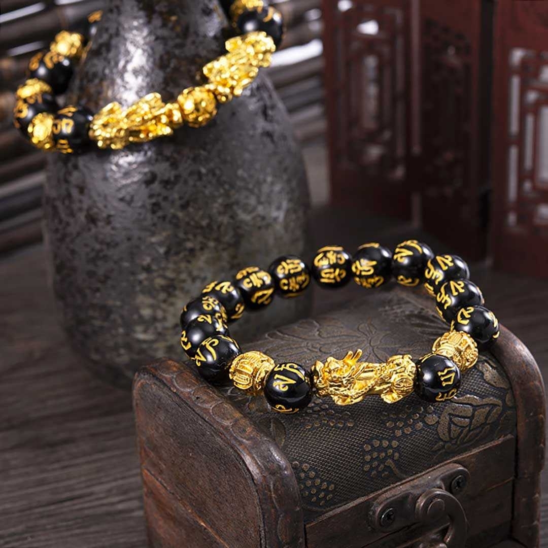 ブレスレット 梵字 金龍 黒数珠 ドラゴン ゴールド 腕輪 アクセサリー