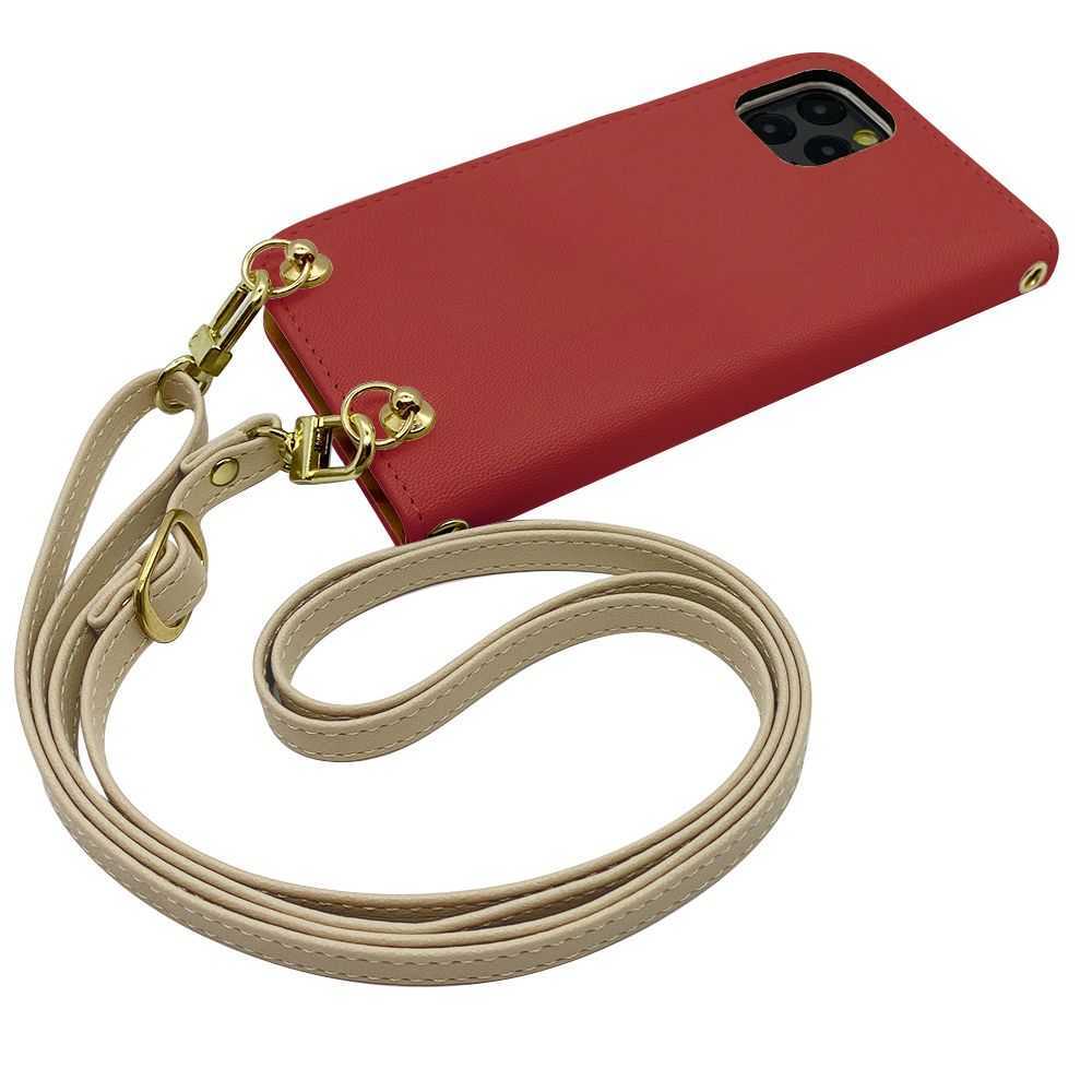 Galaxy A51 5G SC-54A SCG07 スマホショルダー(手帳ボルドー×ストラップ:クリーム)カバー 手帳 くすみカラー