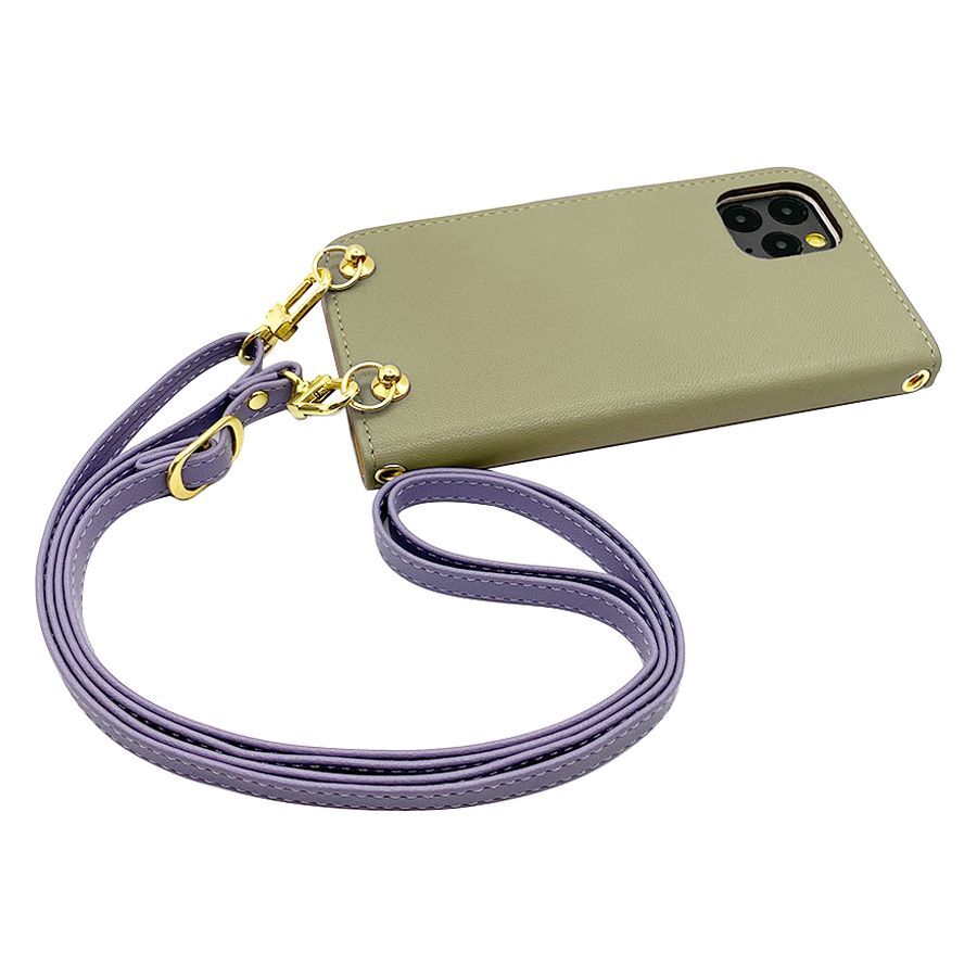 OPPO A73 スマホショルダー(手帳ピスタチオ×ストラップ:アッシュラベンダー)カバー 手帳 くすみカラー