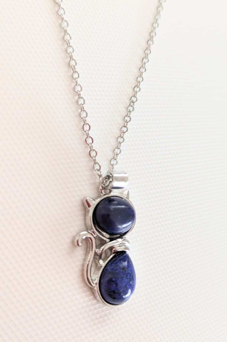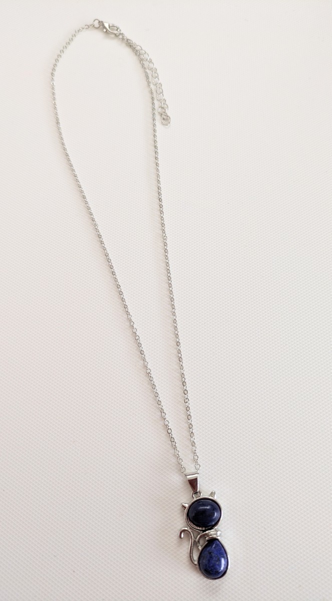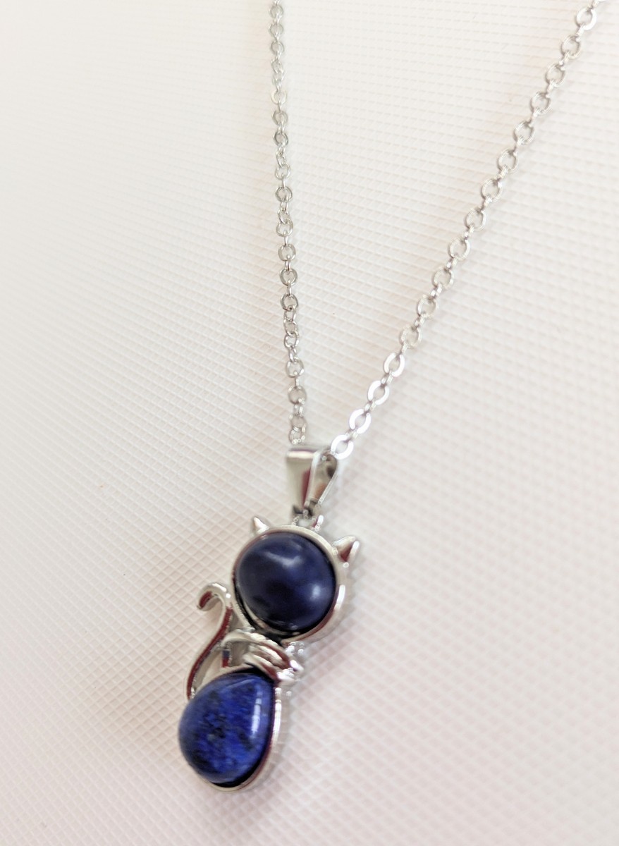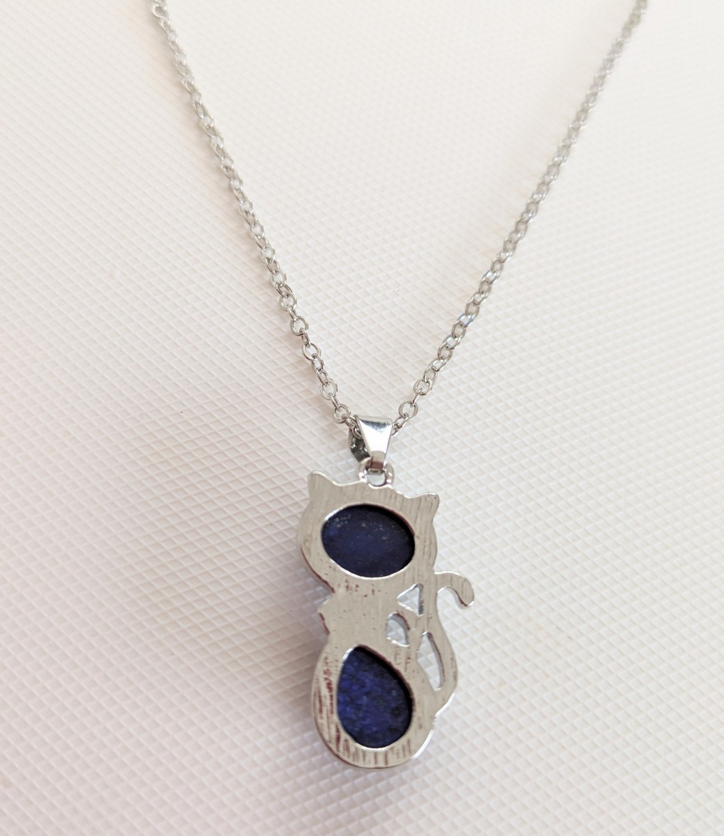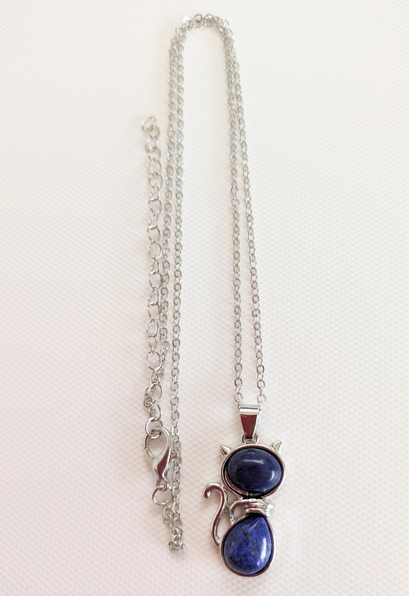 こちらは、新品未使用 猫モチーフ キャット ラピスラズリ 天然石 シルバーカラー ネックレス になります♪