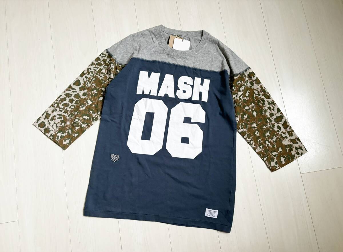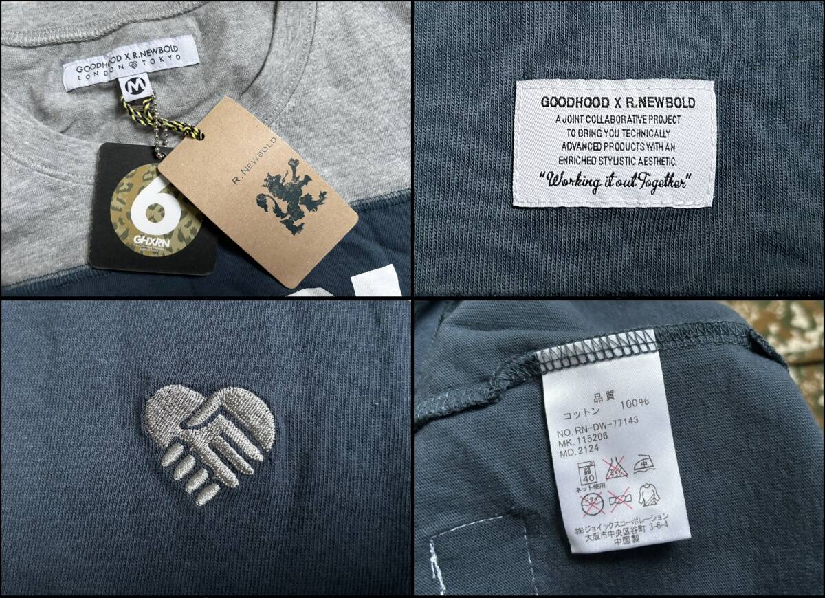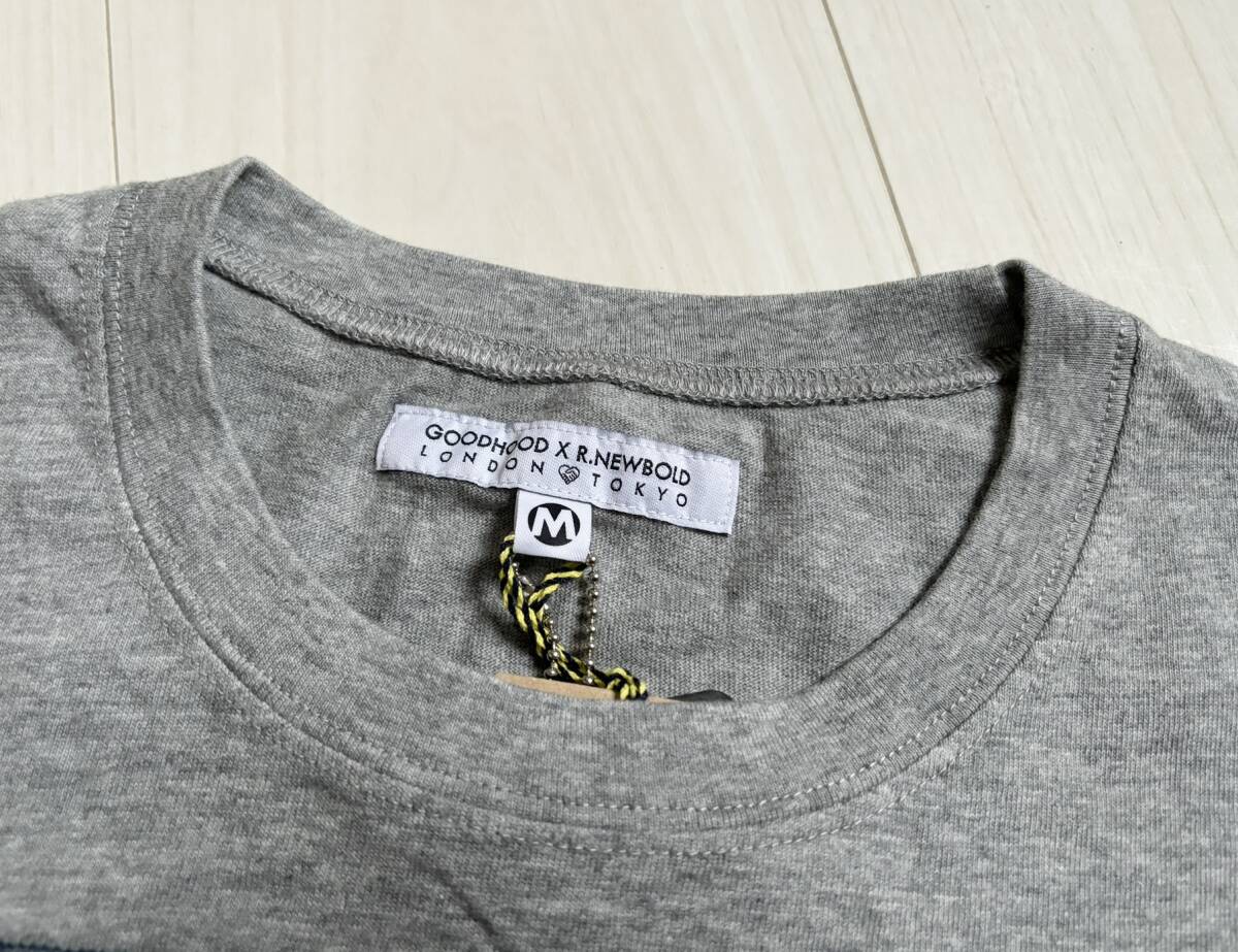 新品 コラボ GHXRN GOODFOOD × R.NEWBOLD グッドフード アールニューボールド カットソー Tシャツ 柄切替 ナンバリング M 迷彩 グレー △3