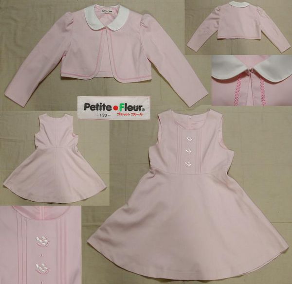表示サイズ:130cm 素人平置き採寸:[ジャケット]身幅40、着丈33、肩幅33、袖丈45 [ワンピース]身幅37、着丈71