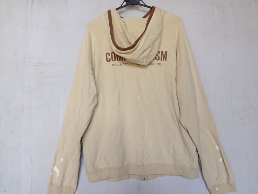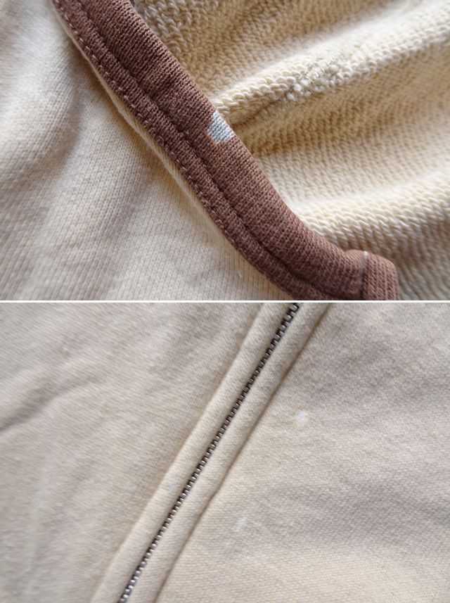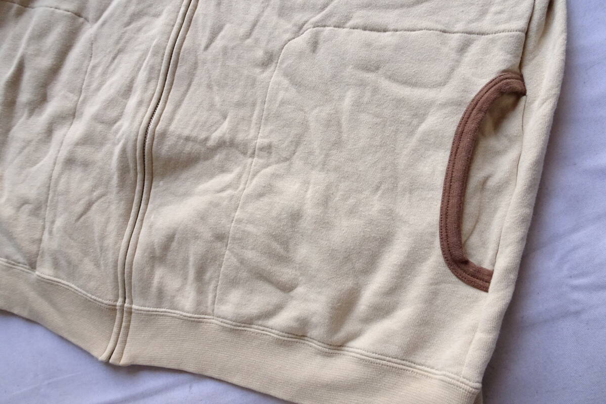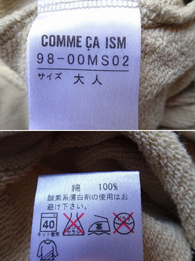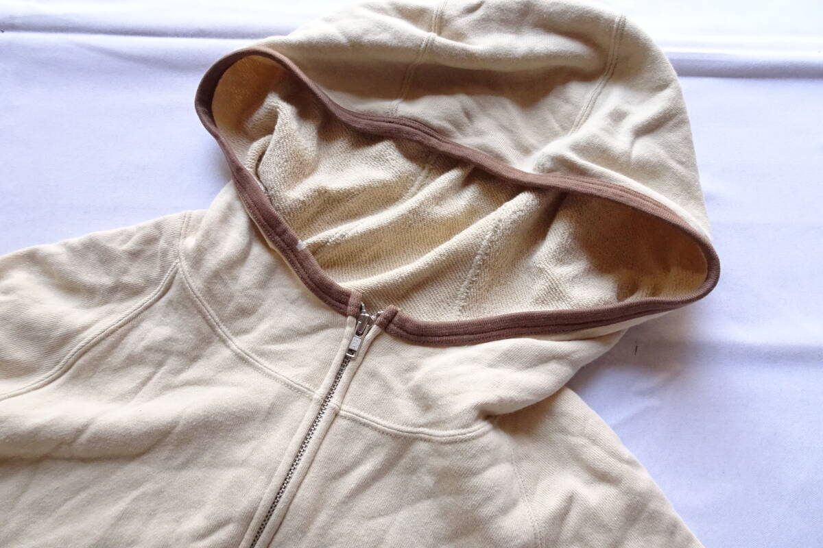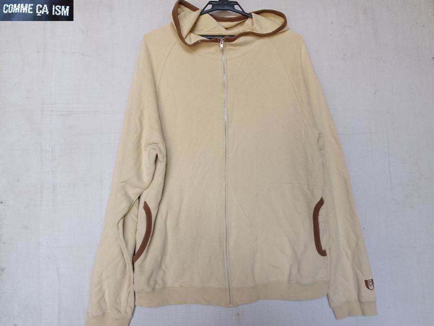 COMME CA ISM/コムサイズム/長袖パーカ/スウェット素材/前ジップアップ/フード顔まわり茶トリミング/ベージュ/大人サイズ(5/2R)