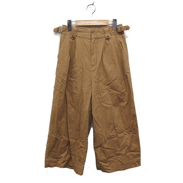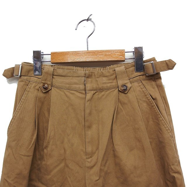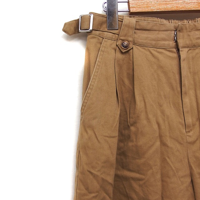 ビームスハート BEAMS HEART タック ワイドパンツ チノパン サイドベルト 無地 綿 1 ブラウン 茶 /FT23 レディース