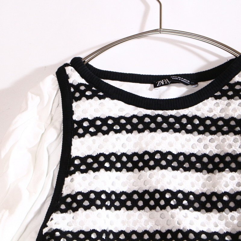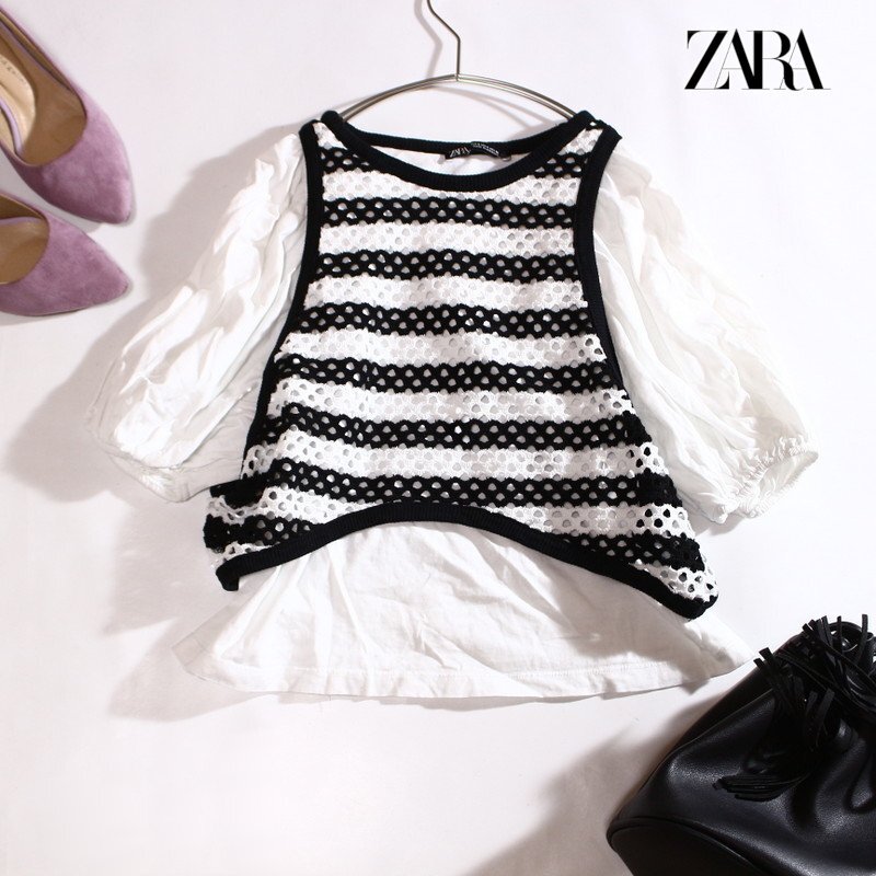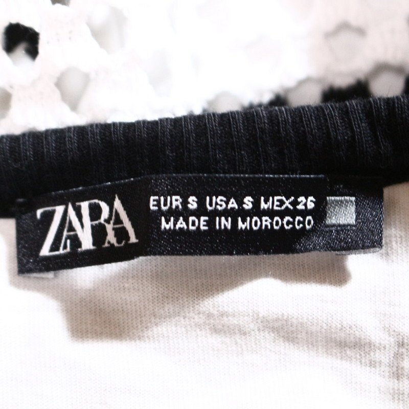 ZARA ザラ 夏 かぎ編みレースベスト 一体 半袖 カットソー プルオーバー S ブラック 黒 ホワイト 白 重ね着 モロッコ製