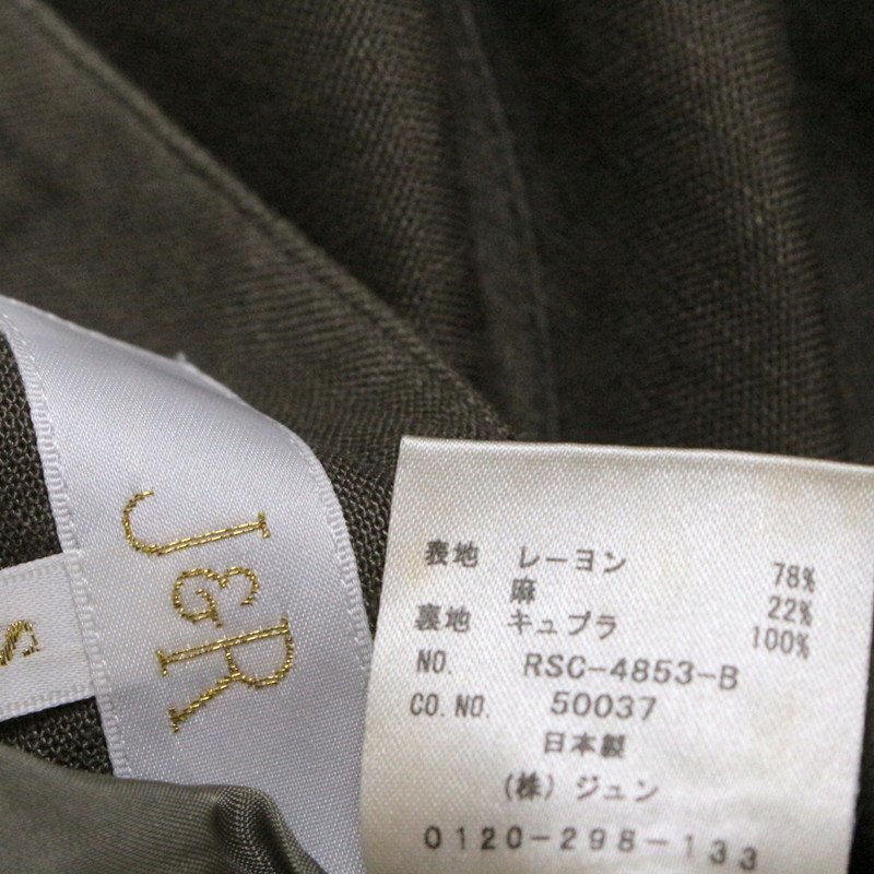 美品 リネン J&R ■ 春 夏 レーヨン 麻 上品 膝下丈 ベルト付き タイト フレアスカート S 7号 カーキ グリーン 緑 綺麗め コンサバ