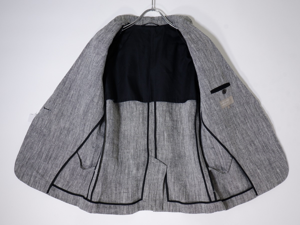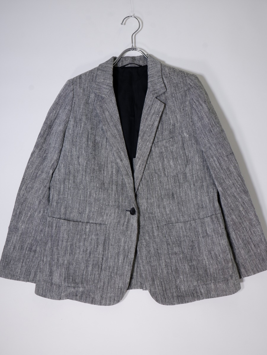 【素材感】ややハリのあるリネン地 【透け感】なし 【裏地】一部あり 【ストレッチ】なし 【開閉デザイン】ボタン 【付属品(取り外し可)】なし 【商品情報】1ボタン・裏地背抜き袖なし・センターベンツ。 |