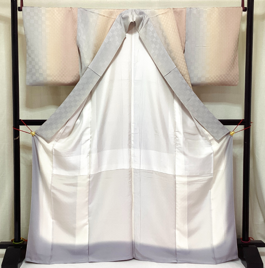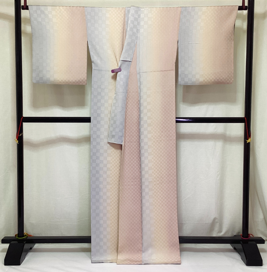 コメント | 中古の正絹お仕立て上がり小紋袷きものです。 伊と幸生地の地紋織縦段ボカシ染のお品物です。 帯次第で、カジュアルからセミフォーマルまで幅広くお召頂けます。 使用感少ない未使用に近い綺麗な品物です。 |