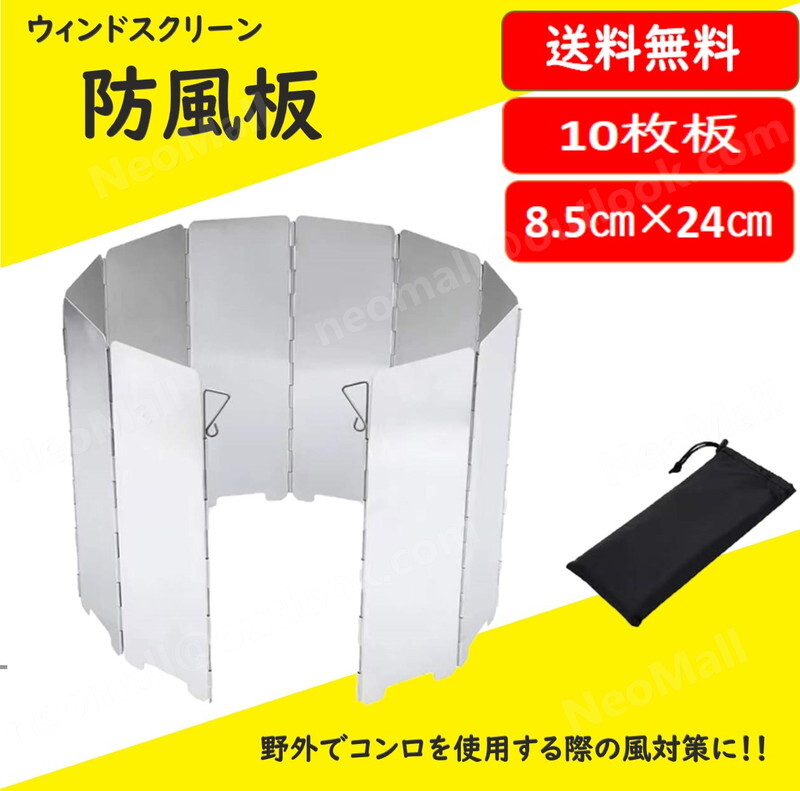 【送料コミ】収納袋付き ウインドスクリーン 10枚タイプ 風除板 防風板 風よけ 風防 風フェンダー 風除け板 アルミ製 コンロ用 折り畳み式
