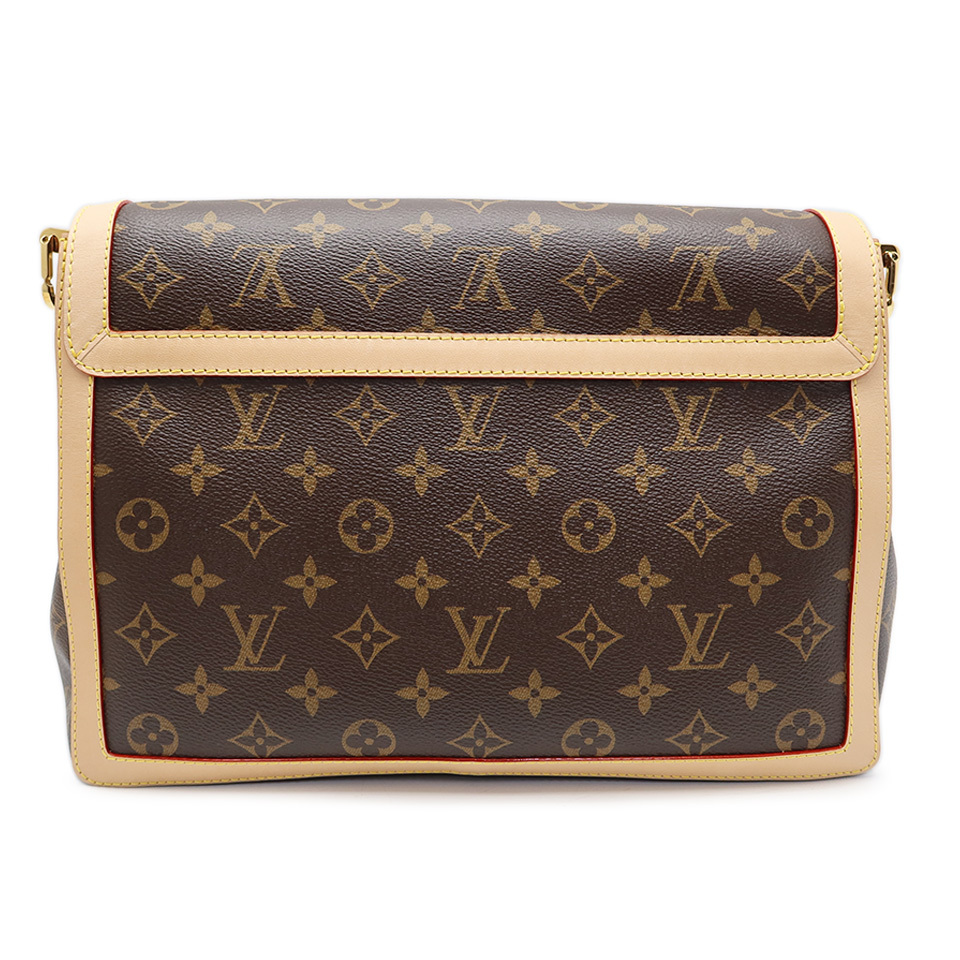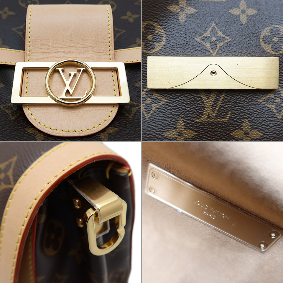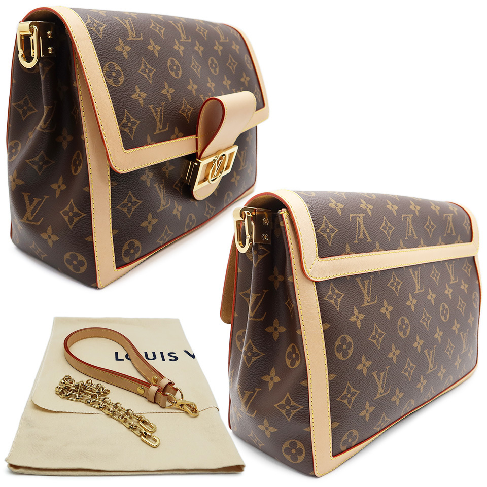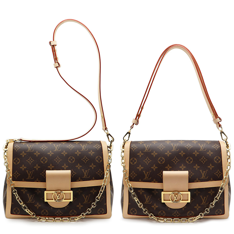備 考 | マグネット付きフラップ開閉 コンパートメント2 ファスナー付きポケット(仕切り) モノグラム・キャンバスにヌメ革のトリミングを施したドーフィーヌソフトGMは、そのしなやかな構造でこの上なく快適に持ち運びが可能。取外し可能なゴールドカラーのチェーンとショルダーストラップで、違った雰囲気をお楽しみいただけます。 留具であるヌメ革にはたくさんのしわがあり、複数の引っかきキズがございます。 ほかヌメ革全体にわずかなヤケがございます。 軽い型くずれがございますが、ほかに目立つ大きなダメージはなくきれいなアイテムです。 ※シリアルナンバーはございません。 2021年ごろから製品自体にあったシリアルナンバーは廃止され、RFID(ICチップ)による管理に移行されています。 当サイトに掲載している商品は、店頭でも展示・販売している場合がございます。 そのため撮影時にはなかったダメージや劣化が生じることがございます。 詳細、ご不明な点は事前にお問い合わせください。 [L]0426 |