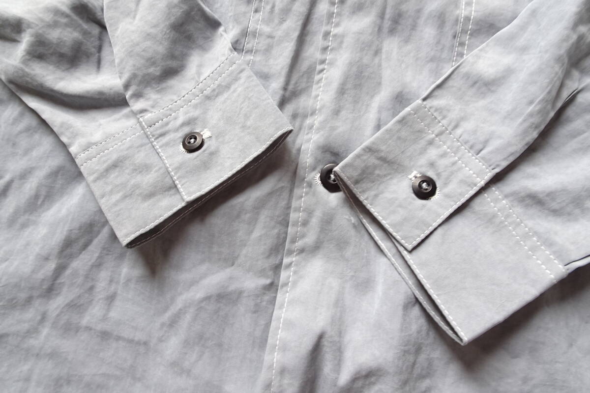 長袖シャツ/ポリエステル・ナイロン混素材/サイドポケット/裾サイドスリット/オーバーサイズ/ブルーグレー/XLサイズ(4/26R)