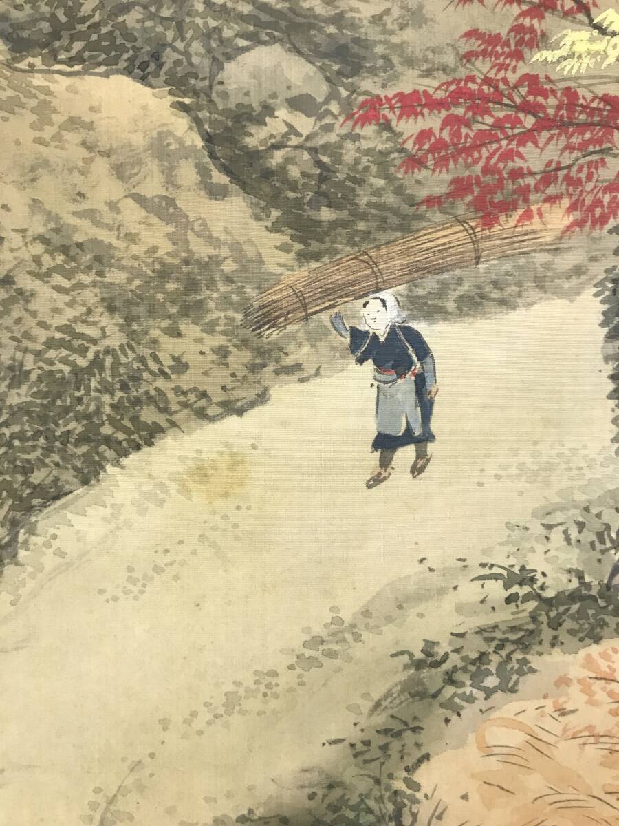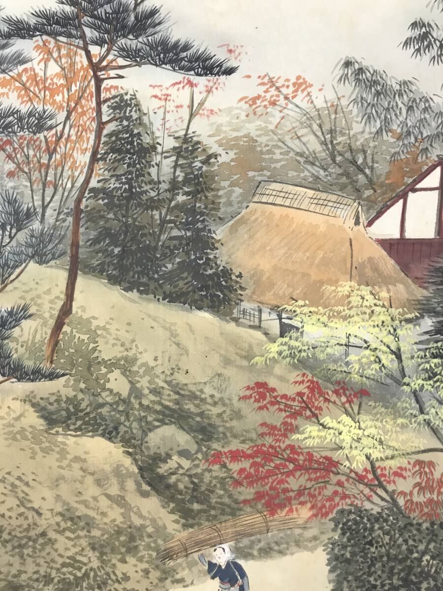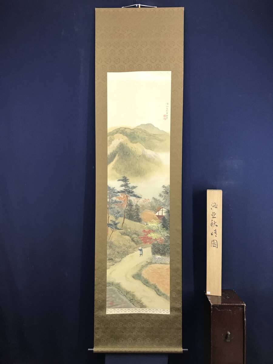 真作/水田硯山/洛北秋晴図/秋景大原女図/秋景山水図/山水図/嵐山山水図/掛軸☆宝船☆AF-591