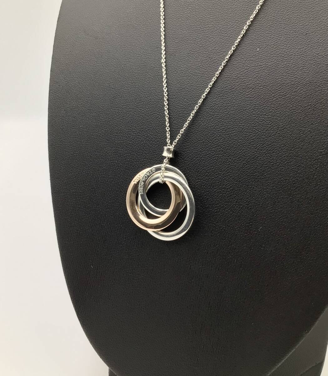 ご覧頂き有難う御座います。 トラブル防止の為、ご入札の前に必ず説明文等最後までお読みになりご理解の上入札宜しくお願い致します。 気持良く使って頂け為に、超音波洗浄・クリーニング・ 磨き・3DUV紫外線消毒99.9除菌をおこなっております。 アフターケアー用、クロス拭き1枚付(約7.5×7.5㎝)プレゼント 商品真贋鑑定済みでございますのでご安心してご購入下さい。 【ブランド】 TIFFANY&Co. ティファニー 【商品名】 1837 インターロッキングサークル3連ルベドメタルSV925シルバーネックレス 【カラー】 シルバールベドメタル 【サイズ】 チェーン約43㎝ 【重量】 約5.3g 【付属品】 なし 【管理番号】 22144 【商品状態】 :A 薄スレありますが、まだまだ活躍して頂ける商品です。 N:新品/未使用品 S:新品同様綺麗な商品 SA:新品同様に近い美中古商品 A:薄傷、汚れが少ない、全体的に状態の良い商品 AB:多少の傷、汚れがみられる中古商品 B:傷汚れがみられる中古商品 BC:傷汚れが多くみられる中古商品 C:かなり傷汚れが多くみられる中古商品 E:難有/ジャンク扱い ◎お休みなども御座いますので、即発送希望の方は 自己紹介欄に記載いたしておりますので必ず御覧確認下さい。 | ||