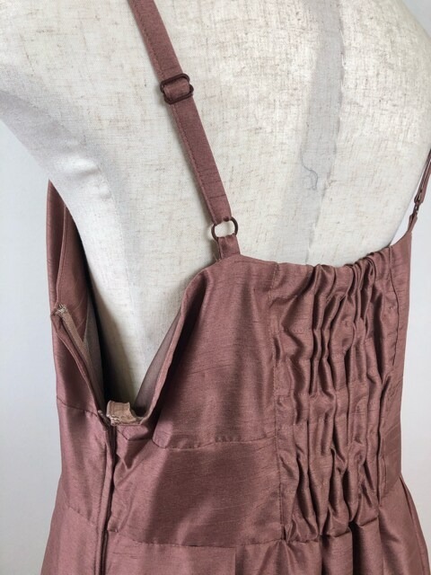 張りがあって高級感のあるシャンタン素材のワンピースに、
