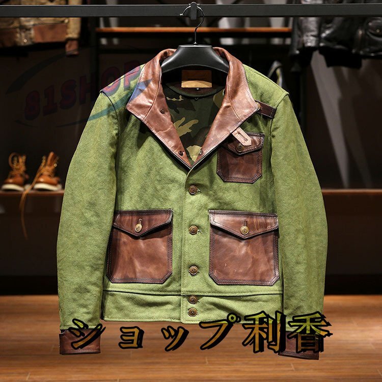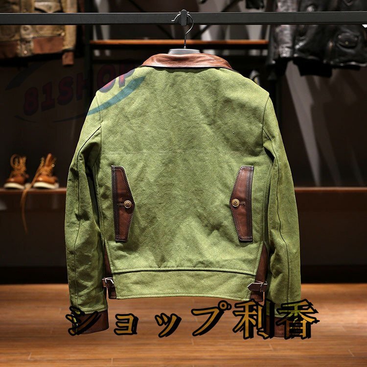 秋冬ライダース アメカジ 切り替えキャンバス バイクジャケット牛革 レザージャケット カウハイド 革ジャン メンズ本革