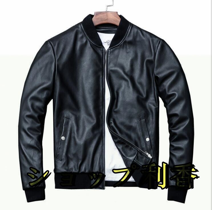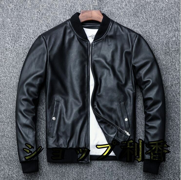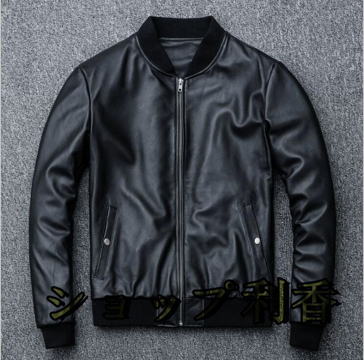 高級本革バイクジャケット牛革 レザー バイクウェア 革ジャン 黒  S~5XL