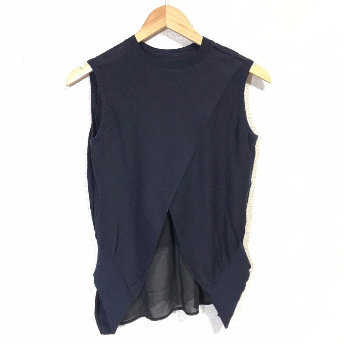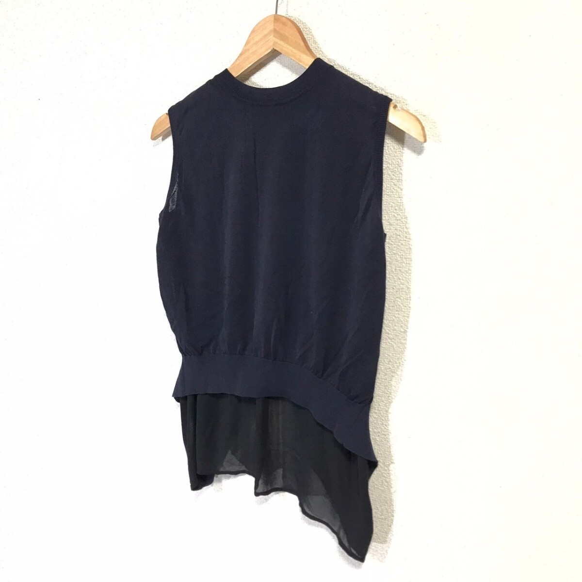 H7980dL GEORGES RECH ジョルジュレッシュ サイズ38 (S~M位) ノースリーブニット カットソー ネイビー×ブラック レディース フェミニン