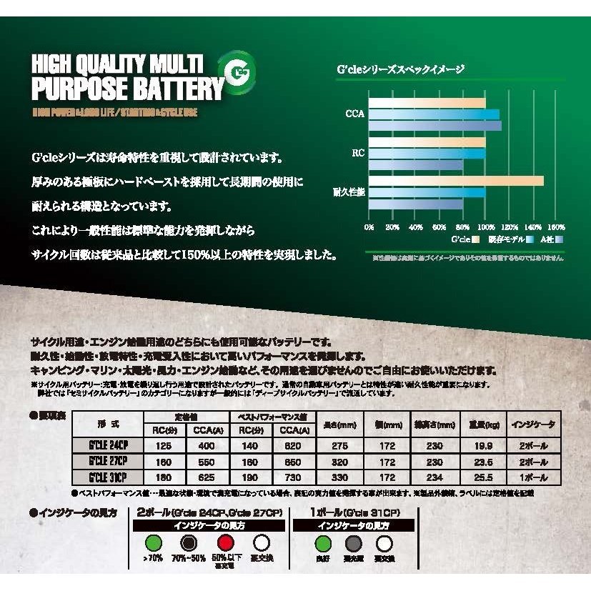 G'cle 27CP スターティング&サイクルバッテリー マリン フィッシング キャンピング 互換 デルコM27MF