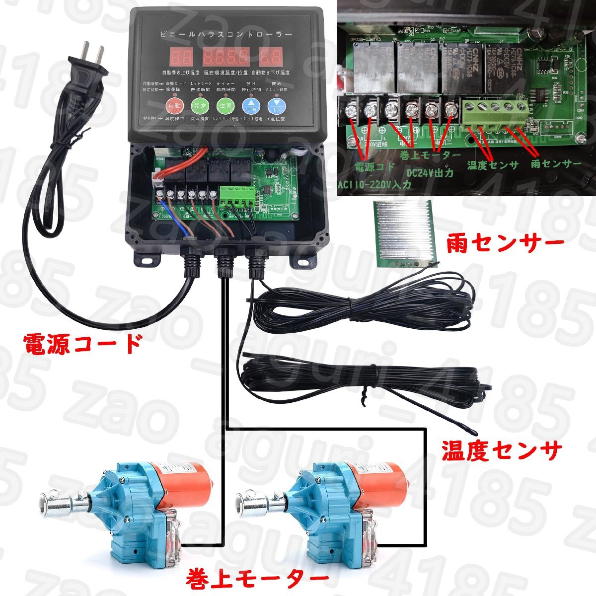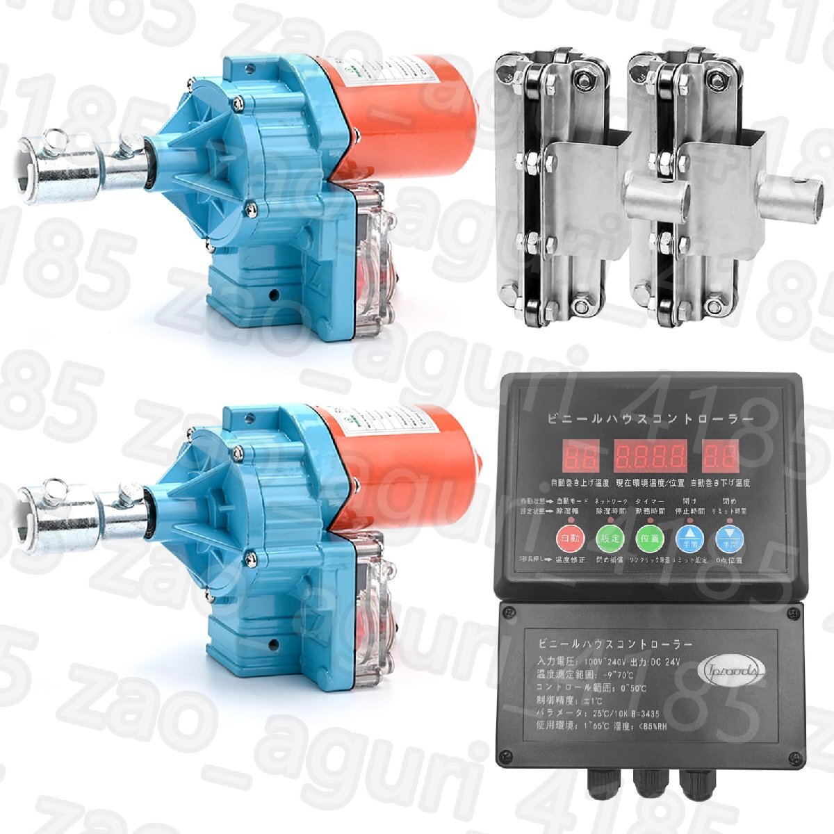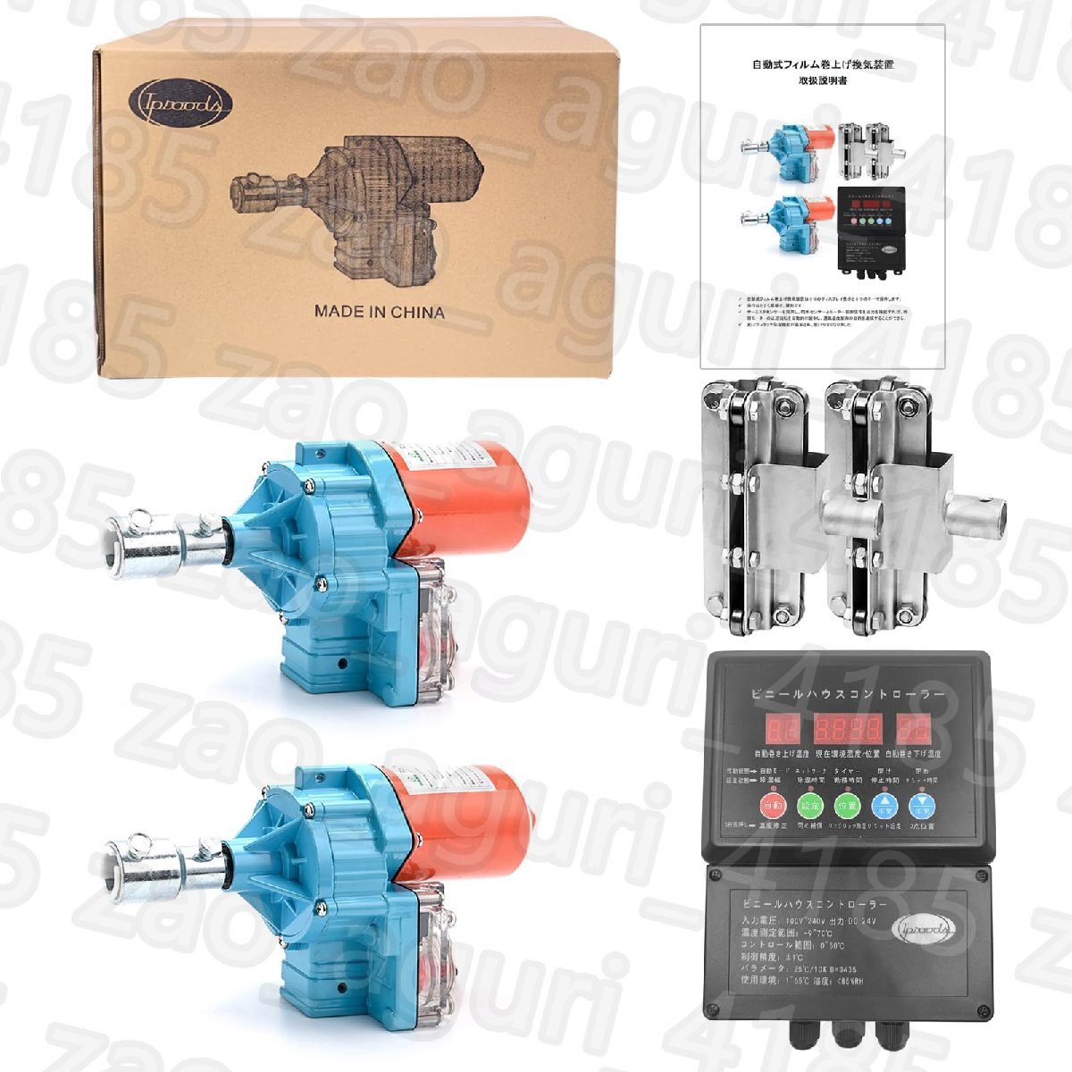 ビニールハウス用 電動フィルム巻上げ換気装置 自動巻き上げ機 100W 4.0rpm 100NM 農業温室用 (巻上モーター*2+制御器*1+リフター*2)