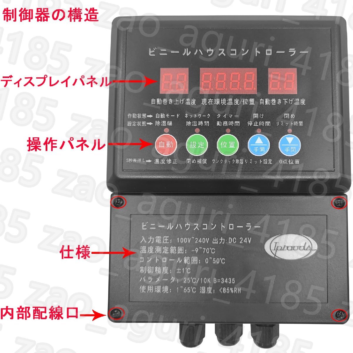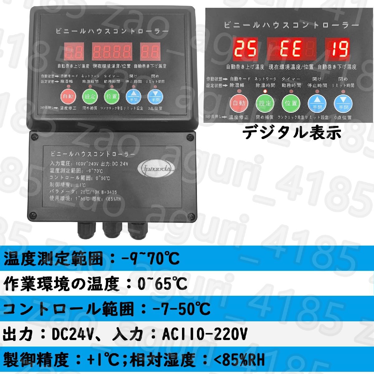 【制御器】アクセス電圧:この制御器はAC110-220VのコンセントとDC24Vのモーターを接続します。巻き上げ温度と巻き下げ温度およびその他の関連パラメータを設定し、上巻モータを製御し、自動化でビニールハウスを開け、ビニールハウスを閉めることを実現する。