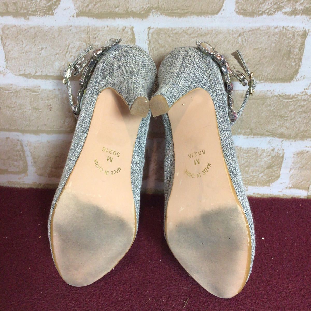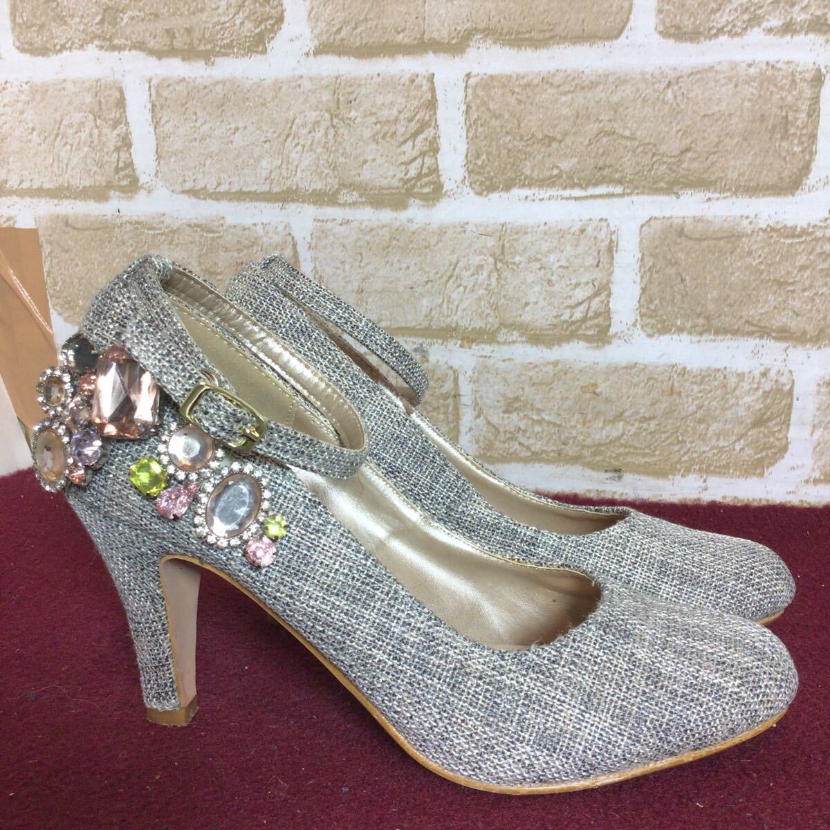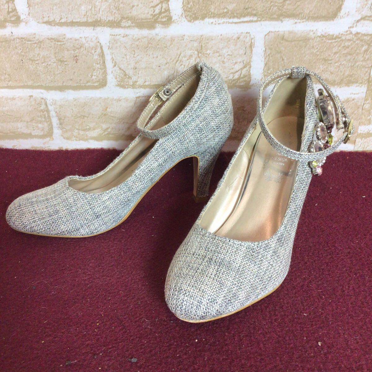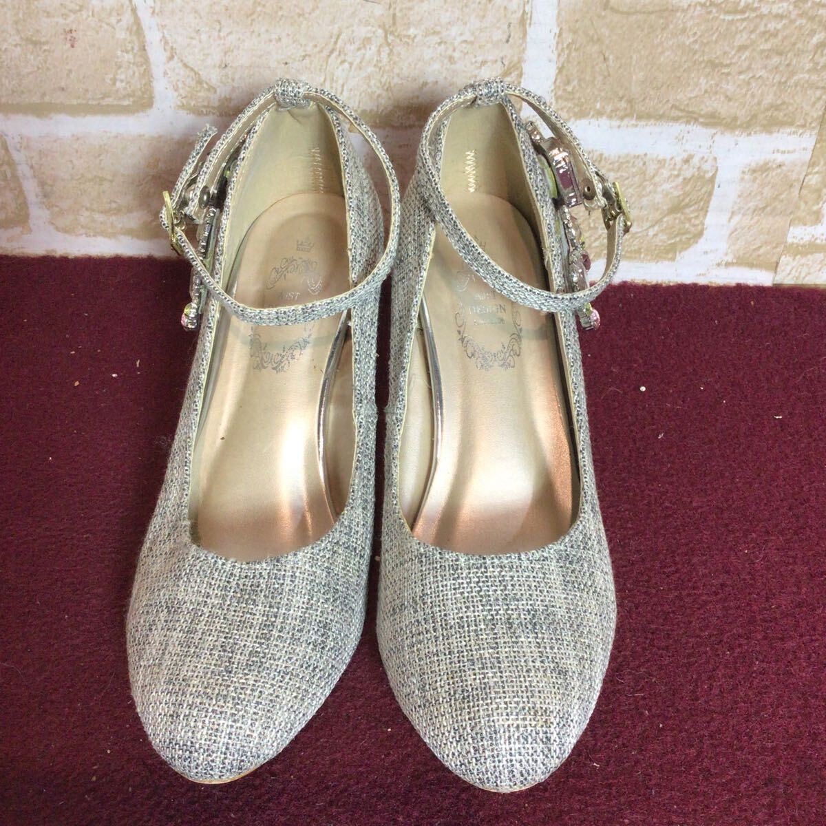 【売り切り!送料無料!】A-353 AJST DESIGN!パンプス!M !スタッズつき!おしゃれ!アンクルストラップ!中古!