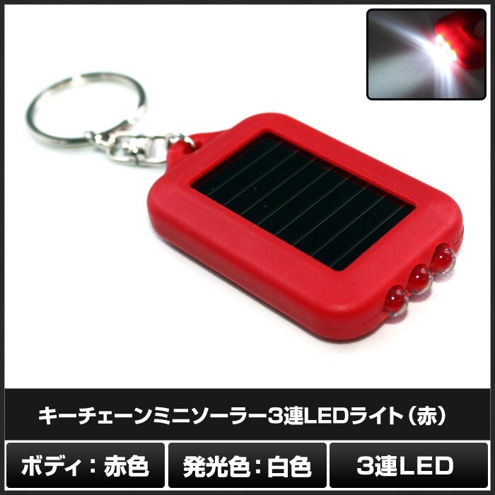 | 7670 キーチェーンミニソーラー3連LEDライト 赤ボディー | 1個 |