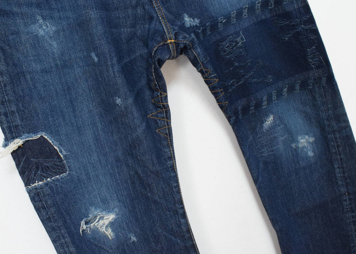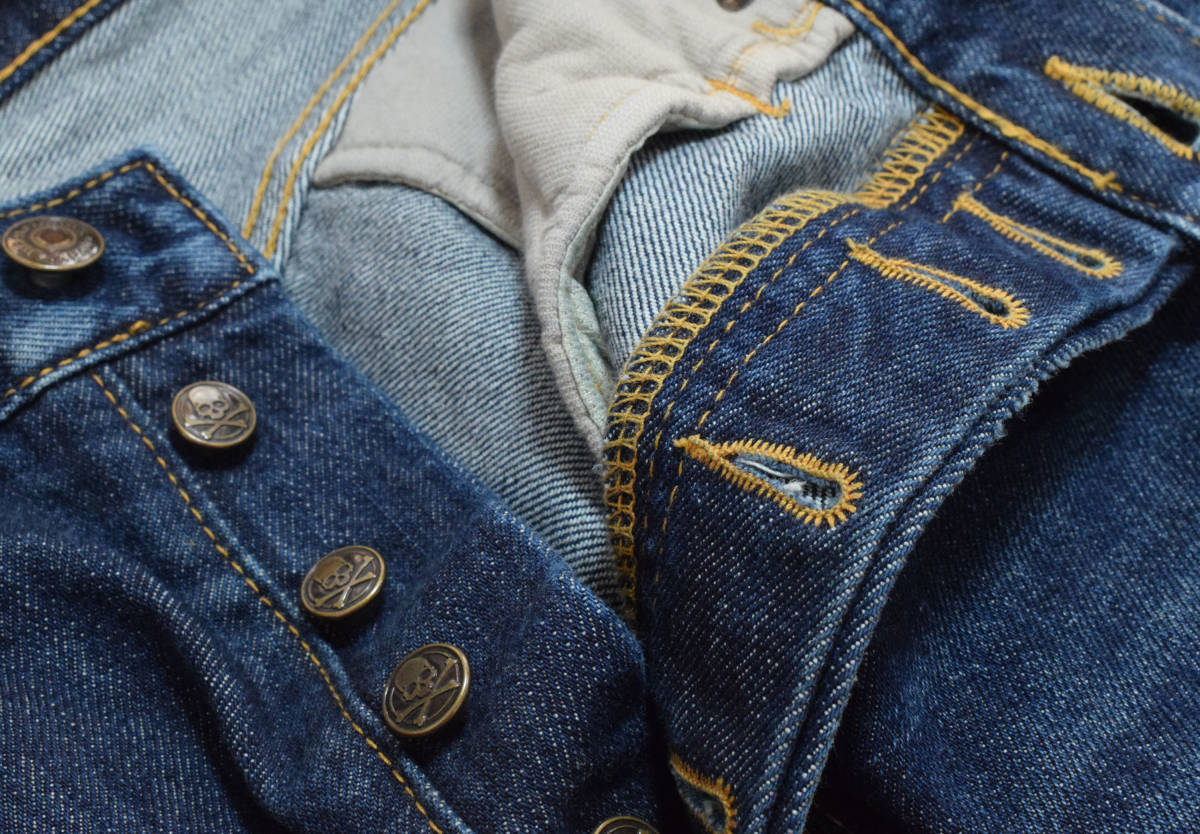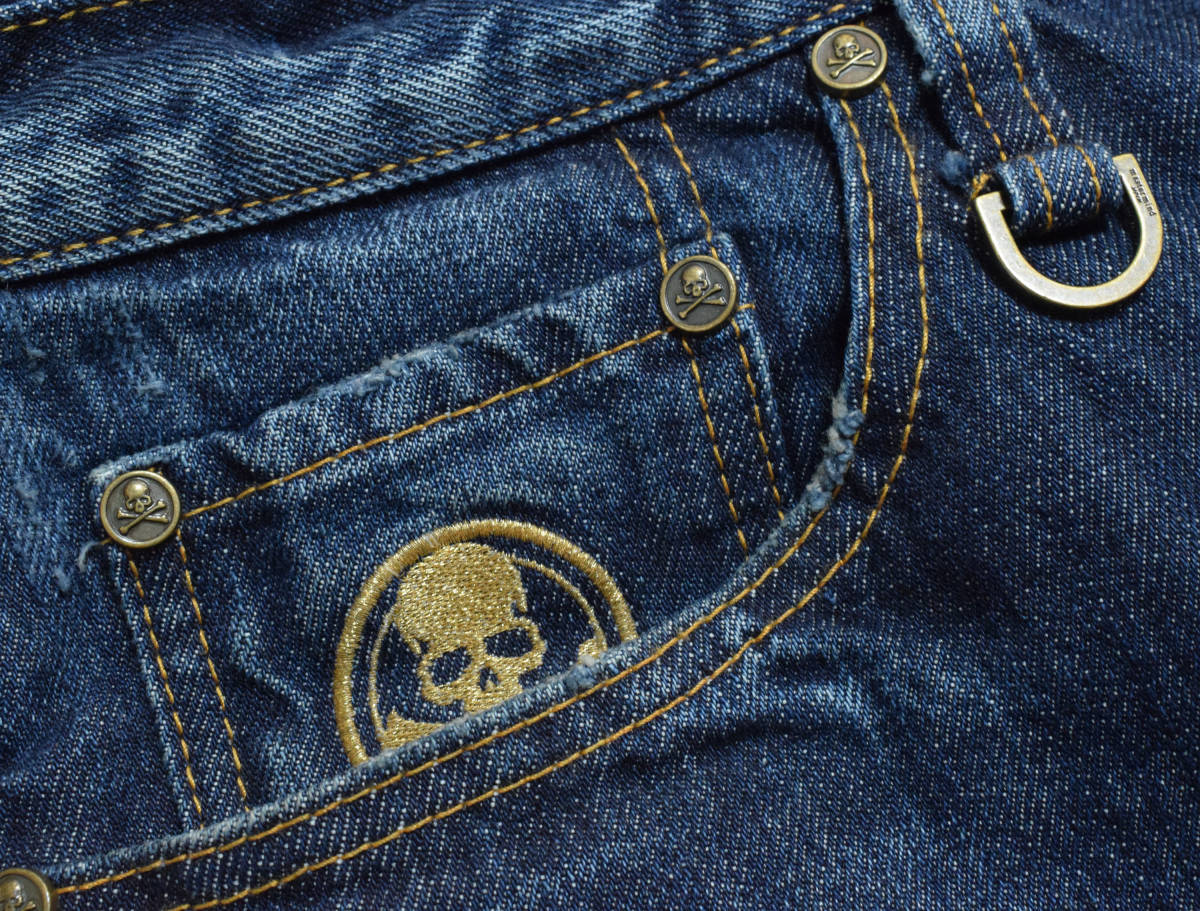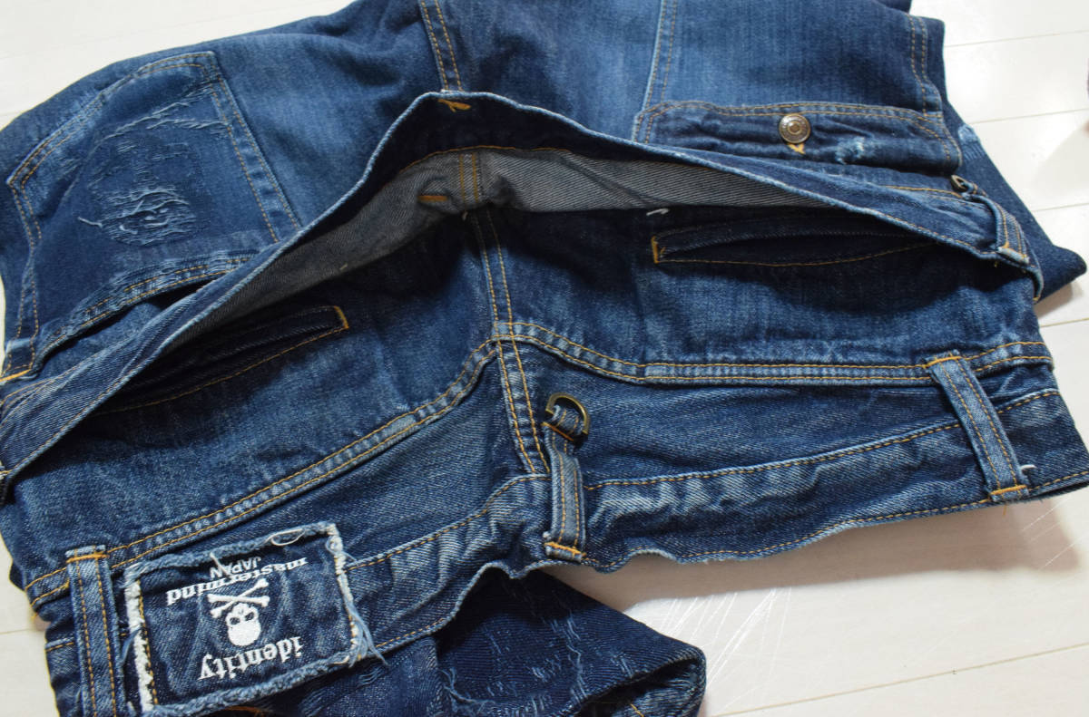 本物 名作 mastermind JAPAN マスターマインド ダブルウエスト スカル ジャガード ダメージ加工 刺繍 デニムパンツ M