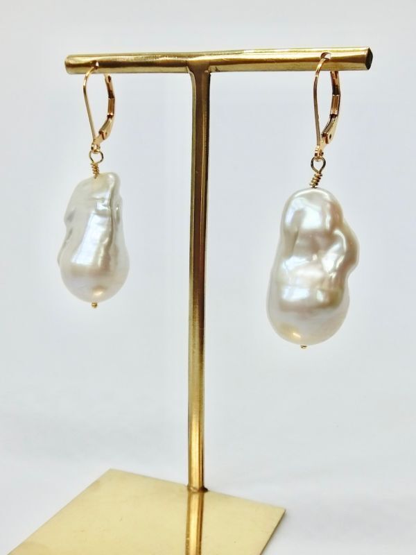 品名: 淡水バロックパールピアス ひとつひとつ個性的な形や色合いが美しいジャーマンフックタイプのバロックパールピアスです。